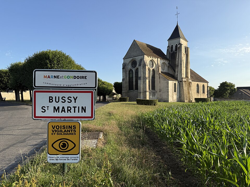 L'église Saint-Martin est une église catholique située à Bussy-Saint-Martin, en Seine-et-Marne. L'édifice est classé au titre des monuments historiques en 1921, et son clocher a fait l'objet d'un classement en 1987. Pour compléter les informations, on peut consulter la base Mérimée, les sites Clochers de France et Observatoire du patrimoine religieux, ainsi que les portails consacrés aux monuments historiques, à la Seine-et-Marne et à l'architecture chrétienne. On peut également se référer aux listes des monuments historiques de Seine-et-Marne (ouest) et des églises de Seine-et-Marne.