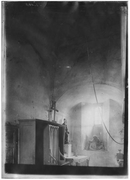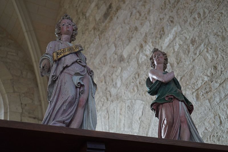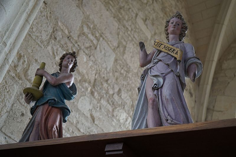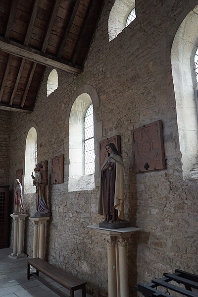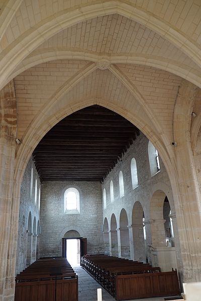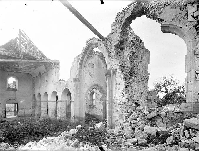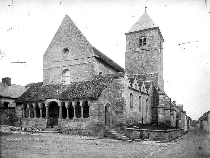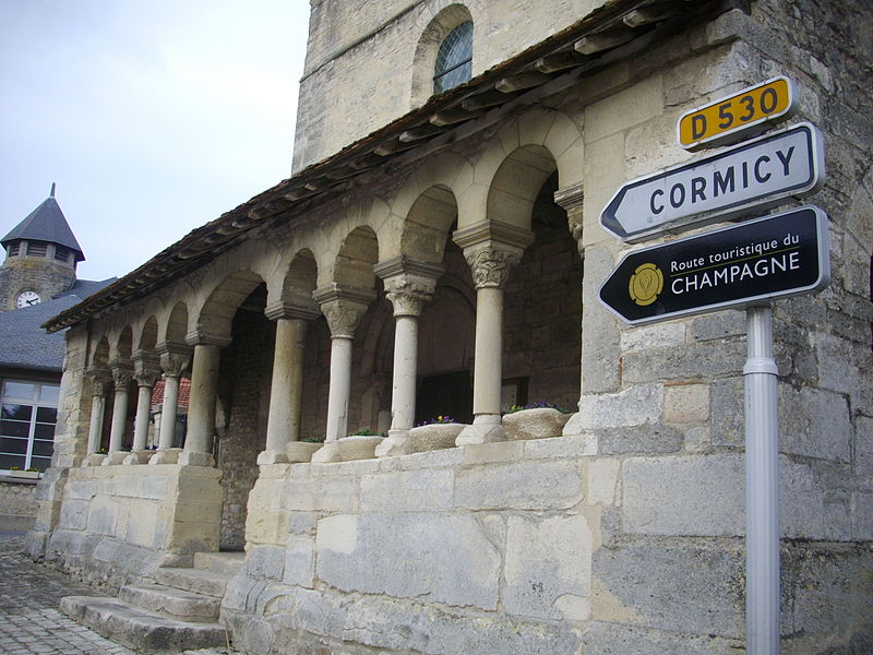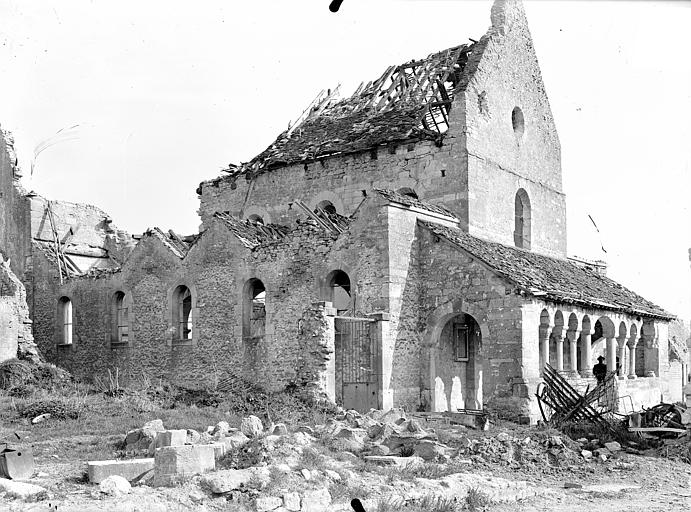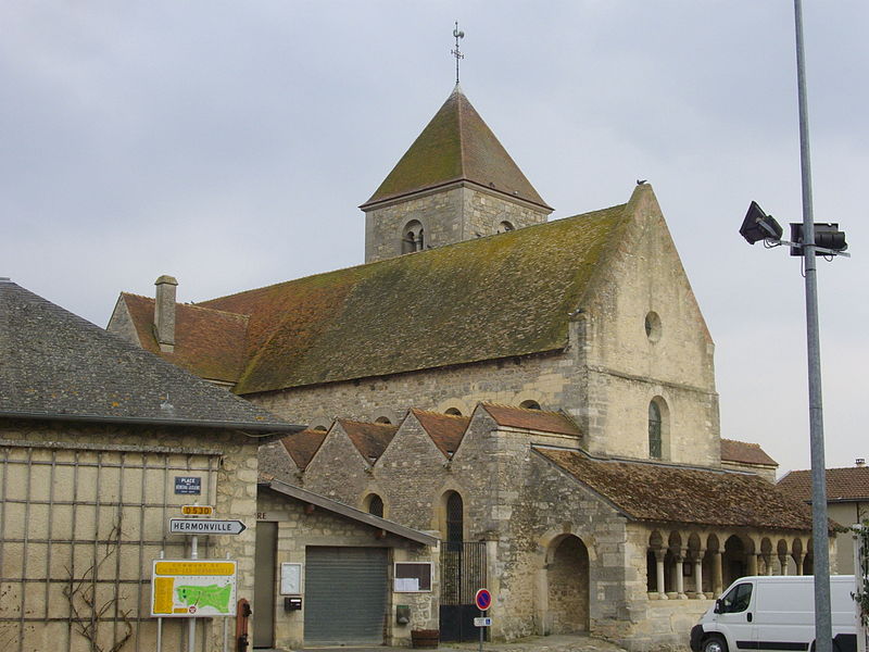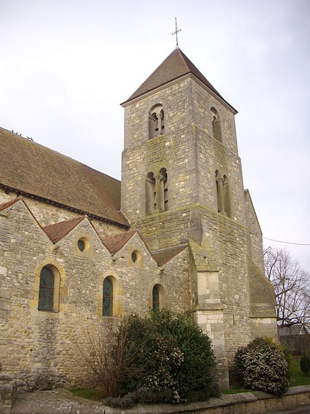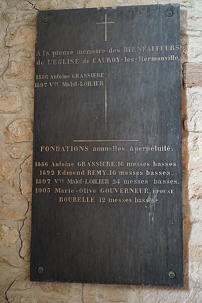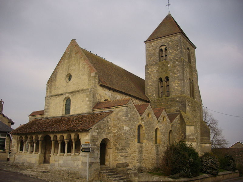 L'église de Cauroy-lès-Hermonville, située dans la Marne, est un édifice d'architecture romane. Sa construction est attribuée au XIe siècle dans certaines sources, tandis que d'autres la situent au XIIe siècle. Elle dépendait de l'Hôtel-Dieu de Reims et est dédiée à Nicaise de Reims et à Notre‑Dame. L'édifice est classé au titre des monuments historiques. Il a subi d'importants dégâts lors de la Première Guerre mondiale. La nef charpentée date de la restauration qui a suivi ces destructions et présente quelques têtes sculptées. L'église a conservé sa tour romane à la croisée. Le chœur portait la date de 1539. Parmi le mobilier préservé figurent un groupe de quatre anges céroféraires du XVIIe siècle et un retable daté de 1547, ainsi que des éléments de décor tels que des poutres et des représentations nommées Fiacre et Anne apprenant à Marie à lire. Le porche constitue l'une des plus anciennes galeries-porches de la région. Ses chapiteaux, datés de 1140, montrent des rubans entrelacés, des palmettes, des bovins, des chouettes et des figures humaines. Certaines de ces figures sont parfois interprétées comme Samson et Dalila. L'ouverture centrale du porche est d'époque postérieure ; l'accès se faisait auparavant par des ouvertures latérales. L'ensemble du porche et de son décor intérieur constitue un exemple remarquable de sculpture romane locale.