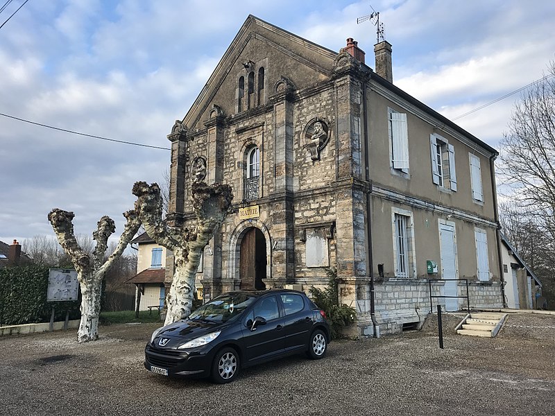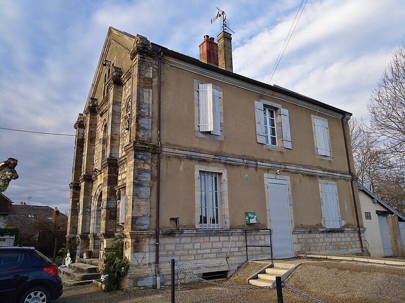 L'édifice néo‑classique, conçu par l'architecte Narcisse Perrard, a été achevé en 1848. En 1876, une salle destinée aux pompes à incendie a été accolée au bâtiment.