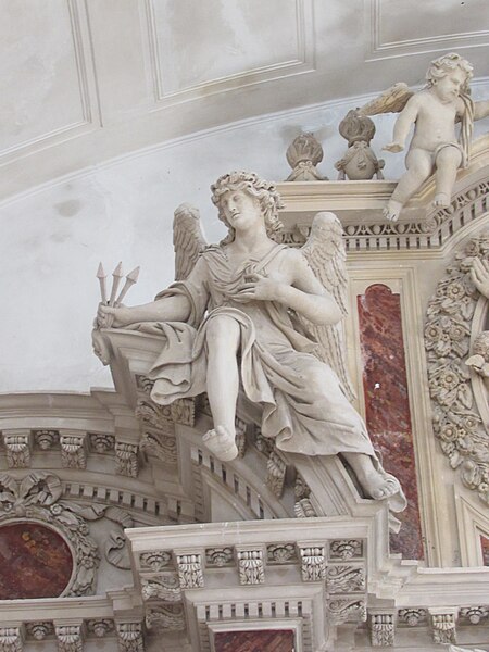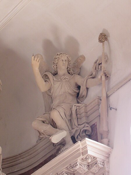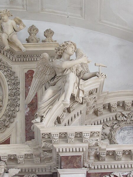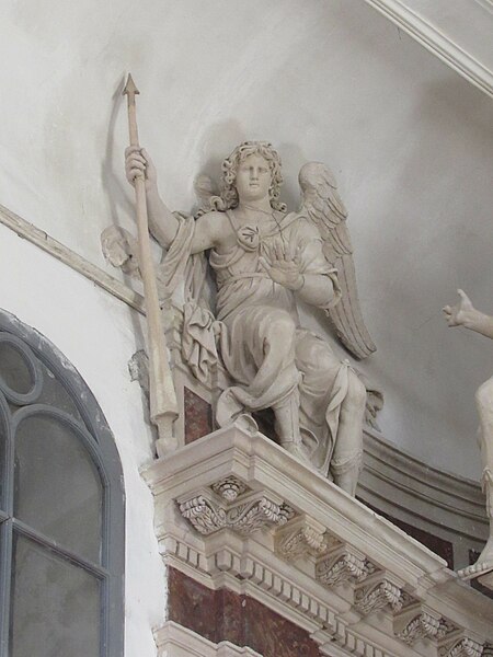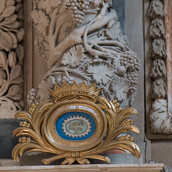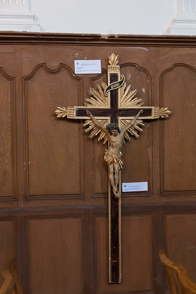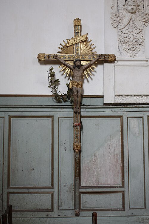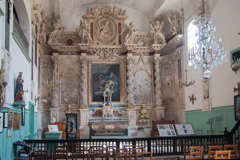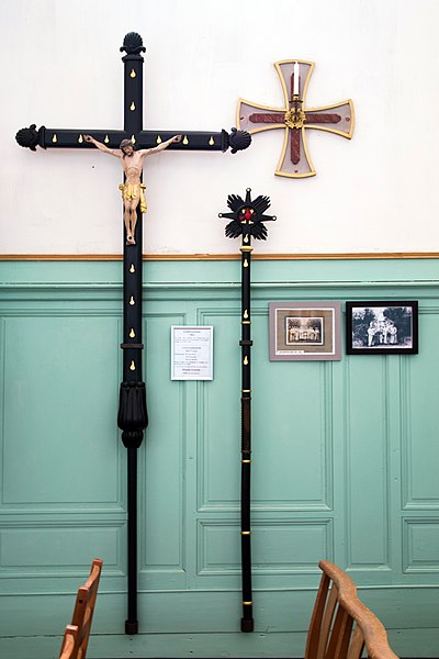 Parmi les éléments visibles figurent le portail, le clocher, le maître-autel avec son tabernacle à ailes, ainsi que le retable et le tableau du maître-autel.