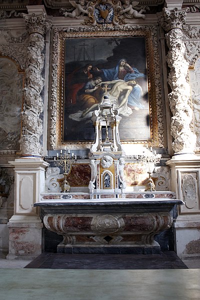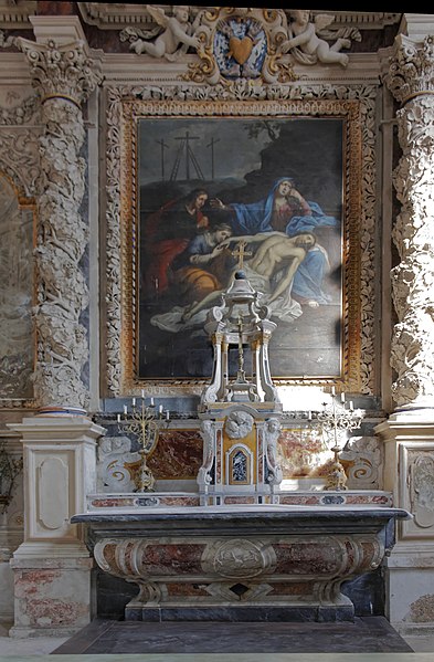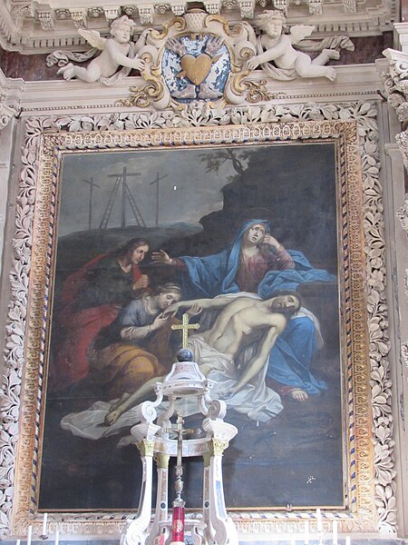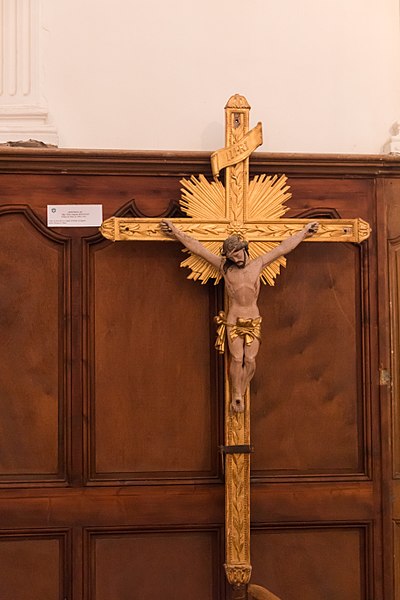 Le mobilier notable comprend un retable en stuc et plâtre gris représentant la Passion du Christ et les armoiries de la confrérie, daté de 1687 et réalisé par Sabatier, sculpteur montpellierain, classé au titre des objets historiques depuis le 30 septembre 1911. Le maître-autel en marbre blanc, œuvre du marbrier Pierre Antoine Rozier datée du XVIIIe siècle, est classé depuis le 6 septembre 1993, de même que la table et la crédence en bois peint et doré et marbre, du XVIIIe siècle, classées depuis le 6 août 1993. La chaire actuelle est une reproduction de l'original du début du XVIIe siècle détruit pendant la Révolution. Deux reliquaires placés en 1815 sur le maître-autel remplacent ceux brûlés à la Révolution : à droite un buste-reliquaire de saint Innocent, pape et martyr, et à gauche un buste-reliquaire de saint Modeste, tous deux en bois peint.
