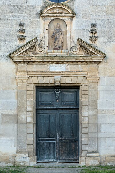 L'édifice présente un vaisseau unique plafonné et un chevet plat. Au nord, un appentis adossé au mur de l'église comporte au rez-de-chaussée un couloir reliant la porte d'entrée à l'escalier desservant les tribunes et la sacristie, tandis qu'à l'étage une tribune ouvre sur la nef par deux baies en anse de panier. Les élévations latérales sont rythmées par des pilastres corinthiens et des fragments d'entablement qui prolongent l'ordonnance du retable. Le portail est encadré de pilastres et surmonté d'un fronton brisé et d'un édicule à niche.