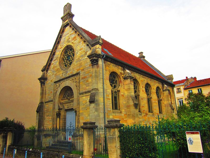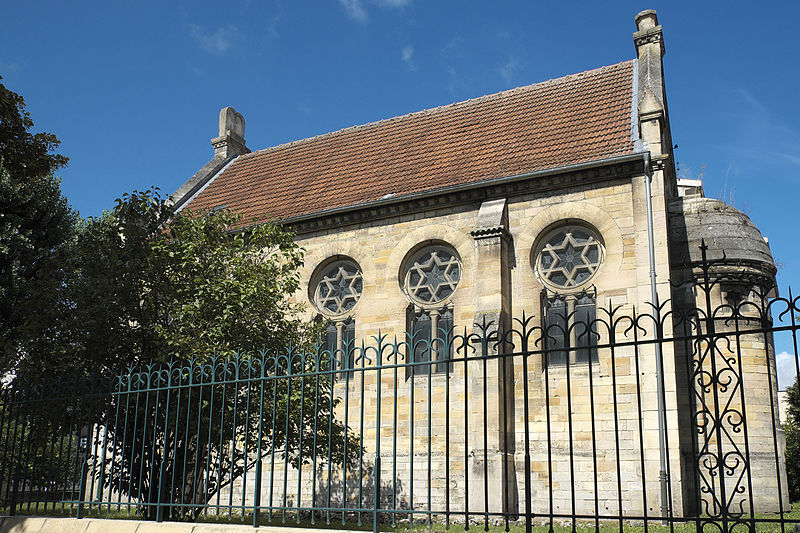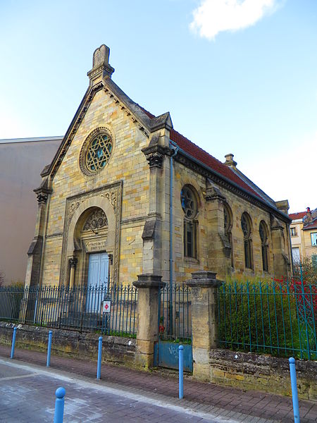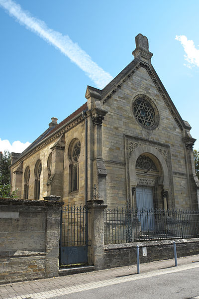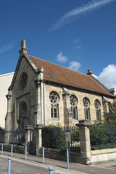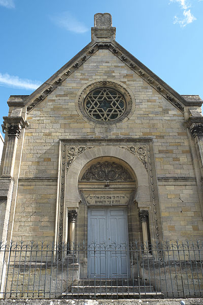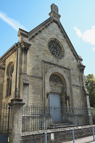 La synagogue de Bar‑le‑Duc, dans le département de la Meuse en Lorraine, est un édifice de taille modeste construit en pierre de taille et couvert d'ardoise. Son architecture, de style mauresque caractéristique des synagogues de la seconde moitié du XIXe siècle dans l'Est de la France, associe symboles israélites et éléments rappelant l'architecture de la Renaissance locale. Le porche s'ouvre sous un arc outrepassé dont le tympan est sculpté de rinceaux et d'entrelacs ; la façade est dotée d'une rosace dont le remplage et les baies de la nef prennent la forme d'étoiles de David, et le pignon est couronné des Tables de la Loi. Des pilastres corinthiens relient ces motifs symboliques au vocabulaire de la Renaissance, tandis que le recours à des arcs outrepassés évoque une inspiration hispano‑mauresque. Au‑dessus de la porte figure en hébreu le verset de la Genèse 28:17 : אֵין זֶה כִּי אִם־בֵּית אֱלֹהִים וְזֶה שַׁעַר הַשָּׁמָיִם׃ (Ce [lieu] n'est autre que la maison de Dieu, Et c'est la porte du ciel). À l'intérieur, la synagogue est organisée en trois parties : un vestibule d'entrée, la nef et un espace qui fait office de chœur ; les murs sont peints, le plafond est en bois, et le décor principal consiste en citations hébraïques disposées selon une progression symbolique. La présence d'une communauté juive à Bar‑le‑Duc est attestée dès le Moyen Âge, mais l'intolérance et la ghettoïsation du XIIe siècle en ont provoqué l'expulsion des villes ; des familles juives sont de nouveau mentionnées à partir de 1727. Jusqu'en 1866 la communauté se réunissait dans une maison particulière ; en 1868 un terrain au bord de l'Ornain est acquis pour y édifier une synagogue, le projet étant financé par souscriptions, la ville et l'État. La construction, conduite par l'architecte Charles Demoget, s'est déroulée entre 1871 et 1872. À la veille de la Seconde Guerre mondiale la communauté comptait encore plus de vingt‑cinq familles, mais la guerre, la déportation et la Shoah ont réduit sa taille au point que le bâtiment n'est plus utilisé comme lieu de culte. L'ensemble de la synagogue, son jardin et son mur de clôture a été inscrit au titre des monuments historiques le 28 février 2013.
