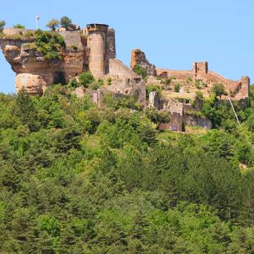 11〜12世紀の中世の遺跡であるペレレードの城は、リヴィエール・サール・トゥーン(アヴェイロン)のジョージ・デュ・ターンを支配します。 元々の戦略的な城、それはルーアグの有名な歴史に目撃します.