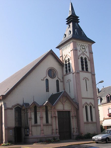Berck-Plage se développe à la fin du XIXe siècle et les fidèles en villégiature se réunissent alors à la chapelle de l'hôpital Maritime, l'église Saint-Jean-Baptiste de Berck-Ville étant trop éloignée du quartier de la plage. En 1877, Aristide Danvin, ancien maire de Berck, organise une réunion publique pour décider de la construction d'un lieu de culte dans ce secteur. En 1882, grâce au comité tontinier, le projet se concrétise : une souscription, des concerts et des quêtes permettent de réunir les fonds nécessaires, tandis qu'Emile de Lhomel procède aux travaux d'aménagement du terrain. La conception est confiée à l'architecte Clovis Normand et l'entrepreneur Delattre s'engage à achever le chantier pour la saison estivale de 1885. Le décret d'ouverture du culte paraît en 1886 ; la chapelle, bénie sous le vocable Notre-Dame-des-Sables, est inaugurée en 1887. L'édifice est agrandi en 1926-27 et les peintures murales portent la signature des peintres René et Luc-Olivier Lesieur. Propriété d'une société tontinière, l'église conserve une gestion diocésaine lors de la loi de séparation de 1905 et ne devient propriété communale qu'en 1988.