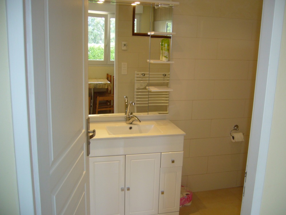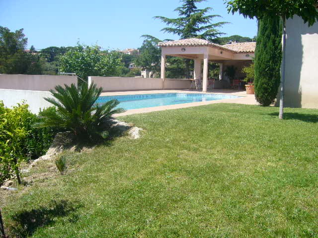 Sainte-Maxime, colline du sémaphore, dans une villa neuve sur 15 ares, au frais et au calme, avec piscine couverte par un volet, couple retraité loue au RDC un 2 pièces de 42 m2 pour 4 personnes maxi (une chambre double + lit d'enfant et convertible double dans le séjour) , place de parking fermée, chauffage et carrelage au sol, cuisine neuve entièrement équipée (Four + MO, frigo congélateur, lave-vaisselle, plaque induction) SDB (avec WC, douche, lave-linge). Séjour (TV et Wifi).