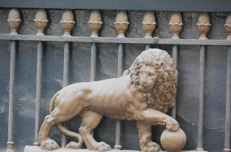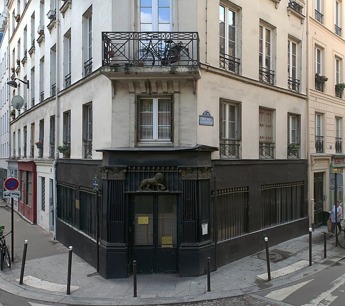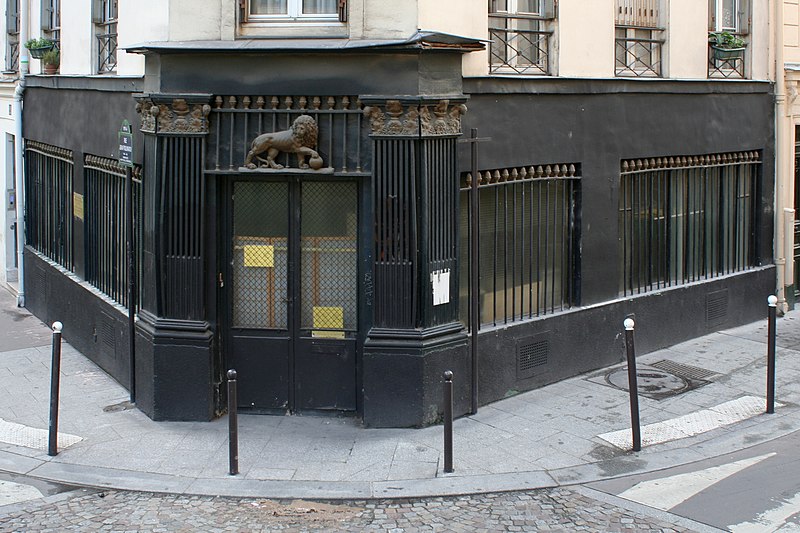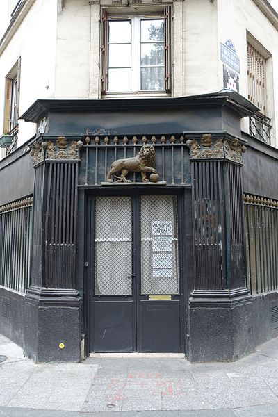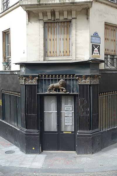 Ancien débit de boisson appelé À l'enseigne du lion d'or, cette ancienne boutique de marchand de vin se situe dans le 10e arrondissement de Paris. Elle occupe le rez-de-chaussée de l'immeuble d'angle formé par la rue Jean-Poulmarch et la rue des Vinaigriers, en face des écluses des Récollets sur le canal Saint-Martin, et est desservie par la station de métro Jacques-Bonsergent. La devanture est protégée par une grille en fer forgé dont les barreaux sont couronnés de pommes de pin dorées, usage courant depuis le XVIIIe siècle. L'entrée, aménagée sur le pan coupé, se compose d'une porte vitrée à deux vantaux surmontée d'une imposte protégée par une grille ornée de pommes de pin, sur laquelle est fixée une enseigne représentant un lion Médicis doré, la patte avant droite posée sur un globe. La porte est encadrée par des pilastres dont les chapiteaux portent un décor figuratif représentant des têtes de Bacchus ainsi que des grappes de raisin et des feuilles de vigne, motifs associés au vin depuis l'Antiquité. La boutique, qui date du début du XIXe siècle, voit sa devanture inscrite au titre des monuments historiques depuis le 23 mai 1984, en même temps que d'autres boutiques parisiennes. Une notice et des images sont accessibles sur Wikimedia Commons.