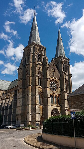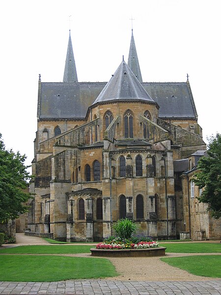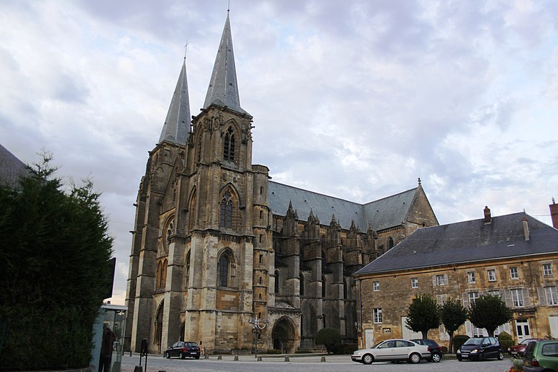 L'abbatiale réunit des solutions héritées d'édifices tels que Laon, Noyon ou Notre-Dame de Paris — élévation sur quatre niveaux, tribunes, arcs trilobés du triforium et piliers monocylindriques — et des innovations comme des arcs-boutants conçus dès l'origine, qui annoncent l'évolution vers des façonnements plus verticaux et la disparition progressive des tribunes au XIIIe siècle. Les restaurations du XIXe siècle, réalisées en pierre de Bulson plus jaune que la pierre originelle de Yoncq, ont reconstruit la façade occidentale en remplaçant la grande verrière flamboyante du XVe siècle par quatre fenêtres surmontées d'une rosace, reconstruit les hauts murs et arcs-boutants des côtés nord et sud, refait des colonnes, supprimé une chapelle flamboyante du XVe siècle dans le bas-côté nord et ajouté une tribune au fond pour le grand orgue, laissant apparaître à l'œil les différences de teinte entre parties anciennes et parties restaurées.