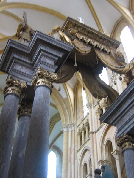 L'orgue de Christophe Moucherel, construit entre 1723 et 1725 avec un décor de Jacques Lemaire, a été déplacé lors des travaux du XIXe siècle sur une tribune en pierre ; il a subi une refonte en 1879, le pillage de ses tuyaux métalliques en 1917, des remplacements en 1923-24 par Pol Renault, des travaux dans les années 1972-73 par Jean Gomrée et une restauration achevée en 1991 par Barthélemy Formentelli.