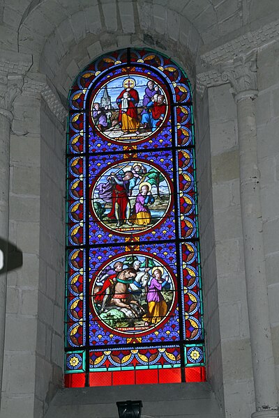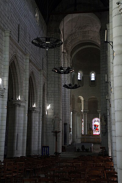 L'abbatiale Notre‑Dame‑la‑Blanche de Selles‑sur‑Cher, également appelée abbatiale Saint‑Eusice, est située à Selles‑sur‑Cher (Loir‑et‑Cher) et a été classée au titre des monuments historiques en 1862. Selon Grégoire de Tours et la Vie de saint Eusice, le roi Childebert fit bâtir une église sur l'emplacement de l'ermitage de Saint‑Eusice après son retour victorieux ; Eusice y mena auparavant une vie érémitique près du Cher et y serait inhumé. L'édifice primitif fut ravagé par les incursions vikings aux VIIIe–IXe siècles, puis relevé; Thibault II releva une partie de la nef en 1015. En 1145 l'abbaye fut attribuée à des chanoines réguliers de l'ordre de Saint‑Augustin, ce qui entraîna la reconstruction de l'abbatiale au cours du deuxième quart du XIIe siècle. La nef fut partiellement remaniée à la fin du XIIe siècle : l'effondrement du mur nord provoqua la reconstruction du mur, des piliers et de la voûte dans un style gothique aux XIIIe et XIVe siècles. Le clocher fut frappé par la foudre en 1523; en 1563 les troupes protestantes de Coligny détruisirent le chœur et dispersèrent le trésor, entraînant l'effondrement de la voûte et la destruction de la crypte. Au début du XVIIe siècle le chœur et le déambulatoire furent recouverts d'un plafond en bois et les fenêtres du chœur obturées; en 1613 la congrégation des Feuillants rehaussa le chœur et agrandit la crypte pour y déposer les reliques de saint Eusice. Pendant la Révolution, les croisillons du transept furent fermés en raison du risque d'effondrement des voûtes. En 1882 l'architecte Anatole de Baudot entreprit une restauration visant à restituer l'état primitif de l'édifice; l'abbatiale telle qu'on la contemple aujourd'hui résulte de ces travaux. L'édifice comprend une nef flanquée de collatéraux, un transept et un chœur entouré d'un déambulatoire à trois chapelles rayonnantes; le carré du transept repose sur quatre piles massives qui encadrent une coupole à pendentifs et supportent le clocher. Le portail principal, orné de colonnes et de chapiteaux pouvant provenir d'une basilique mérovingienne, et l'élégant portail latéral témoignent d'une belle facture, tandis que l'étage supérieur se compose d'un simple mur percé d'oculi et que le plafond est lambrissé. Le chevet de la chapelle axiale est orné de deux frises sculptées du XIIe siècle : la première, sous les fenêtres, représente divers épisodes de la vie du Christ dans un style assez rustre, la seconde, au‑dessus des fenêtres, illustre la vie de saint Eusice. Les reliefs de l'abside évoquent notamment l'Annonciation, la Nativité, la Résurrection de Lazare, la Cène et le Lavement des pieds. La crypte, située sous le chœur, abrite le tombeau de saint Eusice datant du VIe siècle. Parmi les abbés se succédèrent Eusice (mort au VIe siècle), le régulier Raymond Jordan (XIVe siècle‑1380) et, plus tard, des abbés commendataires tels que Jean‑François de La Trémoille (1483‑1506) et René de Beauvilliers (1530‑1557).