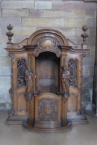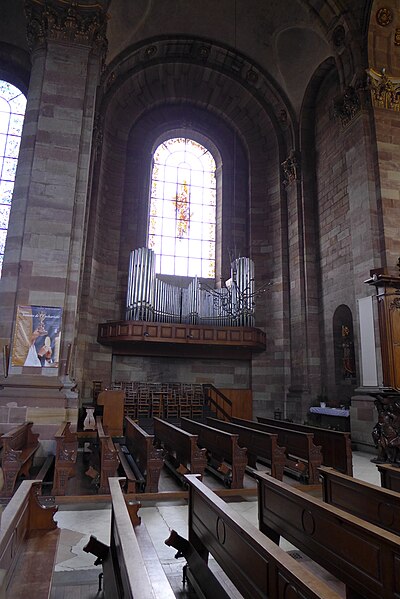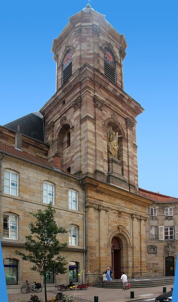 L'abbatiale Saint-Nabor se situe à Saint-Avold en Moselle. Seul vestige de l'ancien prieuré bénédictin, elle était l'église conventuelle et est classée monument historique depuis le 5 avril 1930. Depuis 1792, après la désaffectation de l'ancienne église Saint-Pierre-et-Saint-Paul, elle sert d'église paroissiale et constitue une étape du chemin de Saint-Jacques-de-Compostelle reliant la Sarre à Metz. Un oratoire nommé Hilariacum, fondé par le moine irlandais Saint Fridolin venu de Poitiers, occupa le site avant la création du monastère de Säckingen. Vers 720, l'évêque de Metz Saint Sigisbaud fit édifier une abbaye sous le vocable de saint Pierre. Saint Chrodegang introduisit la règle bénédictine et permit, au retour d'un voyage à Rome le 24 août 765, le transfert des reliques de saint Nabor, dont la fête et le pèlerinage sont encore célébrés ce jour-là. La bourgade qui se développa extra muros prit le nom d'abbatias Sancti-Naboris, devenu au fil du temps Saint-Avold. Le monastère, réputé pour son scriptorium et placé sous la protection des évêques de Metz, a aussi été fréquenté par Enguerrand de Metz, qui y aurait vécu comme simple moine. La Révolution et la Constitution civile du clergé de 1791 divisèrent les opinions locales; la Terreur provoqua l'émigration de soixante-trois personnes en 1793, et Saint-Nabor fut rebaptisé Rosselgène, le culte de l'Être suprême y étant institué. Après la Révolution le Consulat puis l'Empire rétablirent un climat plus calme, notamment grâce à la modération de Jean Nicolas Houllé, archiprêtre de Saint-Avold. La paroisse disposait aussi d'une église gothique dédiée aux apôtres Pierre et Paul, érigée vers 1300, agrandie en 1497 par l'abbé Adam de Roupeldange, puis reconstruite en 1557 et réparée au XVIIIe siècle; elle assura le culte paroissial jusqu'en 1792, fut vendue comme bien national en 1798, partiellement démolie et transformée en habitations, et des vestiges subsistent rue de la Salle. L'origine du lieu de culte remonte au VIIIe siècle; lors de la restauration de l'édifice gothique on mit au jour deux sarcophages en grès et les fondations de l'édifice primitif, ainsi qu'une base d'ossuaire des XIIIe–XIVe siècles contenant encore des ossements. L'abbaye fut reconstruite entre 1720 et 1790 et attira plusieurs dynasties d'artistes, notamment les Metzinger et les Melling. L'église abbatiale actuelle fut édifiée de 1754 à 1769 dans le style classique, sans doute d'après les plans de Dom Léopold Durand, et remplaça une église romane du début du XIe siècle déjà remaniée au début du XVIe siècle. L'abbatiale est bâtie en grès bigarré extrait des carrières de Saint-Avold; ses dimensions extérieures sont de soixante-sept mètres de longueur sur vingt-huit mètres de largeur, avec une toiture à trente mètres et un clocher culminant à quarante-cinq mètres. Il s'agit d'une église-halle avec transept et plan en croix latine; le tour-clocher est hors-œuvre en façade et le chœur semi-circulaire est flanqué de deux tours. Les voûtements comprennent une voûte en berceau, une coupole sur pendentifs, des voûtes d'arêtes et des voûtes d'ogives; les trois nefs sont soutenues par des colonnes de grès aux chapiteaux dorés, qui dégagent une impression d'espace et de clarté. Le mobilier et les œuvres d'art comprennent un groupe sculpté de la Crucifixion en bois polychrome (croix, Vierge, Jean), traditionnellement lié à Jean des Porcelets de Maillane et daté 1624 au pied de la croix, mais dont la facture suggère un début du XVIe siècle; cette sculpture est classée monument historique depuis le 5 novembre 1982. Une Mise au Tombeau de facture bourguignonne datée de 1510 figure également dans l'abbatiale. Une imposante statue en pierre de saint Nabor, armé d'un pilum, se trouve au fond du chœur, au-dessus du tabernacle en pierre. Un retable en pierre du XVe siècle, à sujet marial, était encastré dans le bas-côté nord mais il fut détruit lors du bombardement du 2 août 1945; les boiseries et le bas-relief avaient été classés monument historique le 10 septembre 1923. L'autel en bois sculpté a été remplacé par un autel moderne en marbre reposant sur un unique pied en roche non taillée. Un tableau sur toile du XVIIIe siècle représentant l'Assomption est classé depuis le 28 mars 1979, et quatre peintures marouflées, réalisées par des artistes munichois lors des travaux engagés à partir de 1905 par le curé Dicop et évoquant la vie de saint Nicolas, sont classées depuis le 5 novembre 1982. Les grandes orgues, construites par Barthélémy Chevreux en 1770–1771, reçurent un buffet sculpté par Jacques Gounin en 1769; l'instrument fut restauré au début du XXe siècle par la maison Kries et son décor confié à Weissdorff, puis classé le 11 janvier 1982. Reconstruit par Koenig en 1987, l'instrument comprend quatre claviers de 51, 51, 32 et 32 notes, un pédalier de 29 notes et des transmissions mécaniques; un orgue de chœur installé en 1957 par Haerpfer-Erman possède deux claviers de 56 notes, un pédalier de 30 notes et des transmissions électriques. Des vitraux conçus par Franz Xaver Zettler de Munich furent posés en 1910 et détruits en 1944; leurs vestiges sont classés depuis le 5 novembre 1982. Les vitraux actuels, réalisés par le maître-verrier naborien Arthur Schouler entre 1969 et 1971, couvrent une surface de 420 m². La sonnerie comprend un bourdon de la Fonderie Paccard, installé le 14 novembre 1920, béni par Mgr Pelt, pesant 6 000 kg pour 2,10 m de diamètre et accordé en sol; c'est le seul rescapé du pillage de 1944. Autrefois complétée par un petit bourdon, un carillon de dix-neuf cloches et sept autres cloches, la sonnerie fut recomplétée en 1947 par quatre grosses cloches de Blanchet, ramenant l'ensemble actuel à cinq cloches de volée. La sacristie conserve un ensemble complet de boiseries, a