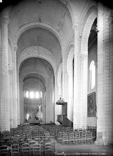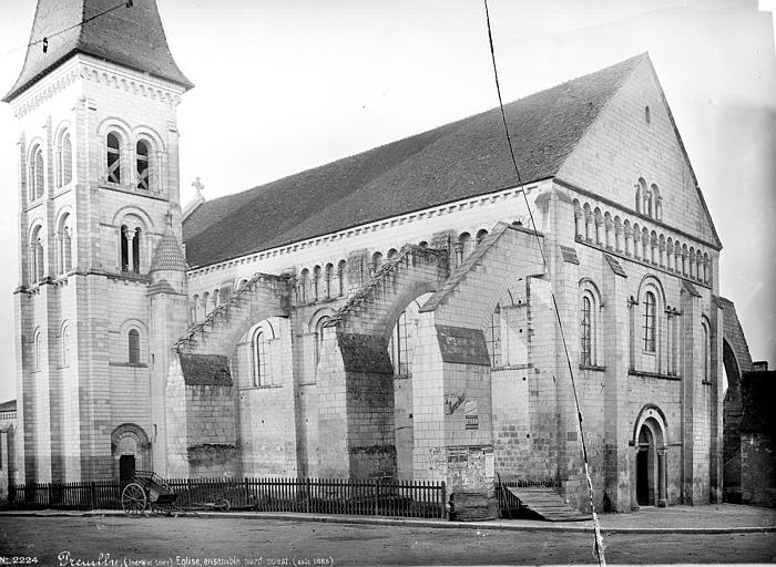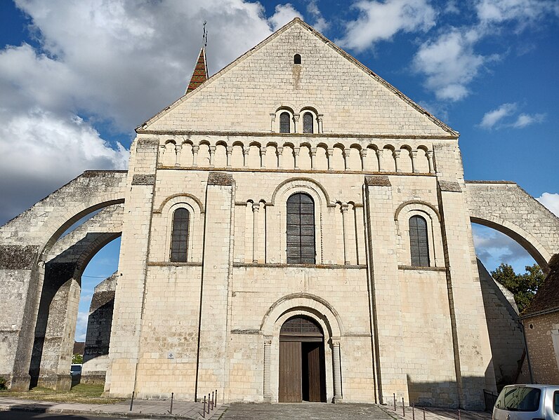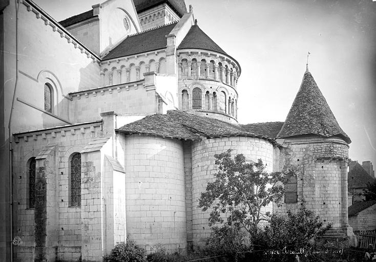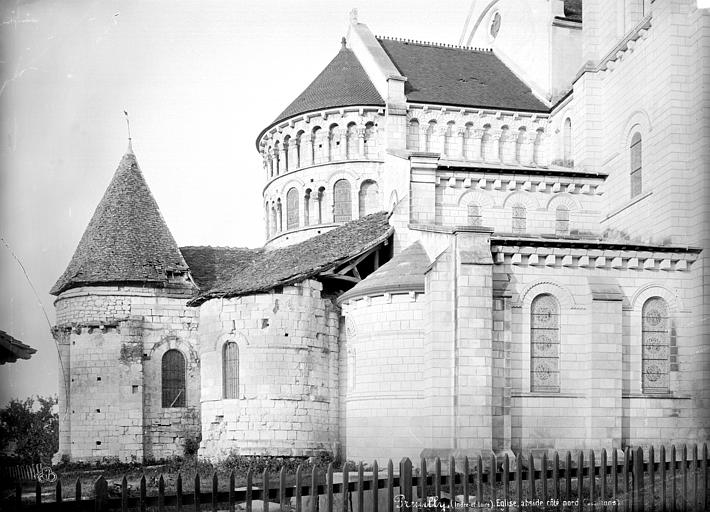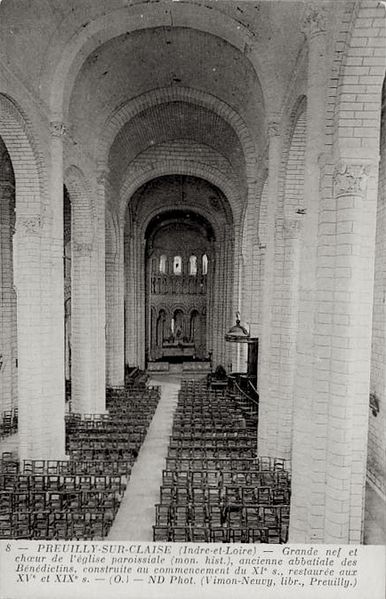L'abbatiale Saint-Pierre de Preuilly-sur-Claise, de style romano-byzantin, domine le centre de la commune. Fondée par Effroy, seigneur de Preuilly et de La Roche-Posay, l'abbaye bénédictine est associée, selon les sources, à plusieurs dates : fondation en 1001, achèvement en 1009 et approbation du roi Robert II en 1012 ; la consécration fut assurée par l'archevêque d'Angers Archambaud de Sully et l'église placée sous l'invocation de saint Pierre. De plan en croix latine, l'édifice présente un déambulatoire autour de l'abside qui ouvre sur trois chapelles absidales, ainsi que des chapelles à l'extrémité de chaque croisillon du transept. À la naissance de chaque croisillon s'élevait primitivement une tour abritant un clocher ; une crypte se trouve sous le sanctuaire. Dans la nef, chaque pilier, massif et carré, est cantonné de quatre colonnettes arrondies ; les chapiteaux sont ornés de feuillages, de bandelettes, de figures fantastiques et de représentations humaines. Les murs furent consolidés par des contreforts au XVe siècle. L'abbatiale comprenait une chapelle latérale dédiée à saint Melaine où ses reliques furent déposées ; la châsse d'argent fut saisie à la Révolution, certains restes, dont le crâne, ont été conservés et des reliques réparties entre plusieurs églises de l'Ouest, tandis que l'effondrement du clocher a anéanti la chapelle Saint-Melaine. L'édifice a connu d'importantes restaurations aux XIXe et XXe siècles : après l'effondrement du clocher en 1867, celui-ci fut reconstruit en 1873 et couronné d'une haute flèche couverte de tuiles vernissées, de goût proche des toitures des hospices de Beaune ; les vitraux datent des XIXe et XXe siècles. L'abbatiale est reconnue pour l'originalité de son plan et la richesse de sa sculpture, en particulier ses chapiteaux historiés, ce qui en fait un édifice majeur de l'art roman. Des auteurs tels que Charles Audigé, Constant Moisand, l'abbé Bourassé et Charles Huysmans ont souligné ses particularités, notamment le décalage entre l'axe de la nef et celui du chœur et l'absidiole centrale, interprétée par certains comme la tête inclinée du Christ. Les bâtiments conventuels, situés au sud de l'église, furent vendus à la Révolution ; on y reconnaît encore le logis de l'abbé face à la Claise, des vestiges du cloître intégrés au presbytère dans le prolongement du transept sud et le moulin de l'abbaye près du vieux pont. Classée au titre des monuments historiques par l'arrêté de 1840, l'abbatiale sert aujourd'hui d'église paroissiale ; son éclairage contemporain a été conçu par l'agence Neo Light.