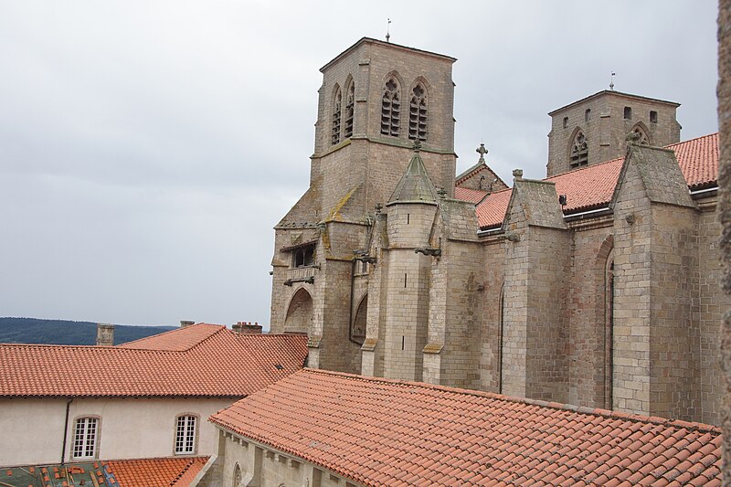 L'église abbatiale Saint‑Robert se dresse à La Chaise‑Dieu, en Haute‑Loire, et est classée au titre des monuments historiques. L'abbaye a été fondée par Robert de Turlande en 1043 et comptait environ trois cents moines à sa mort. Un ancien moine, Pierre Roger de Beaufort, devenu pape sous le nom de Clément VI, décida de remplacer l'ancienne église romane par une abbatiale plus vaste et d'y établir son tombeau. L'annonce de la reconstruction date du 3 mai 1344 et les travaux de fondation commencèrent dès cette année‑là; le gros œuvre, aux dimensions importantes, fut achevé rapidement, selon les comptes du chantier. La nouvelle abbatiale fut édifiée autour de l'ancien édifice roman dont la nef fut démolie d'ouest en est et le chœur ultérieurement; Hugues Morel et le maître‑lapicide Pierre Salciat assurèrent l'exécution, Salciat prenant la direction des travaux à partir de 1347. Pierre de Cébazat, maître d'œuvre de la cathédrale de Clermont, fut l'interlocuteur privilégié du pape et présenta, avec Salciat, des dessins de l'abbatiale et de son portail occidental. Bâtie en granit gris local, l'abbatiale est un édifice gothique de style rayonnant, marqué par une grande austérité et parfois rangé parmi les réalisations du gothique méridional, bien que son importance dépasse le cadre régional. L'édifice subit d'importants dommages lors du passage de troupes huguenotes et connut des aménagements et enrichissements au XVIIe et au début du XVIIIe siècle, notamment la construction et l'amélioration d'un orgue par l'abbé Hyacinthe Serroni. Une restauration menée par Michel Garnier a concerné l'ensemble entre 1990 et 1995.