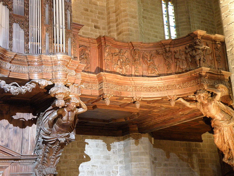 L'orgue de l'abbatiale se compose de deux buffets construits séparément et de styles différents; la tribune et le petit buffet, réalisés en 1683 par le sculpteur Jean Cox, occupent toute la largeur de la nef et présentent une riche sculpture. Commandé par Hyacinthe Serroni, cet ensemble n'avait pas été achevé et, en 1726, le facteur Marin Carouge installa un nouvel instrument dans un buffet ajouté derrière le premier, formant ainsi le Grand‑Orgue; ce second buffet est d'un travail plus sobre et d'un style distinct. Peu utilisé après la Révolution, l'instrument se dégrada jusqu'à l'intervention de György Cziffra en 1966, qui contribua à relancer l'intérêt pour l'orgue et le festival de musique de La Chaise‑Dieu. La tribune et les buffets ont été classés au titre des objets des monuments historiques en 1903, la partie instrumentale ayant reçu une protection complémentaire en 1970; l'orgue a été restauré dans les années 1970 puis de façon plus aboutie dans les années 1990. Il présente aujourd'hui quarante jeux répartis sur quatre claviers manuels et un pédalier à la française, des transmissions mécaniques et un soufflage assuré par quatre soufflets cunéiformes; son diapason est à La = 396 Hz, ce qui le rend particulièrement adapté à l'interprétation de la musique française du Grand Siècle.