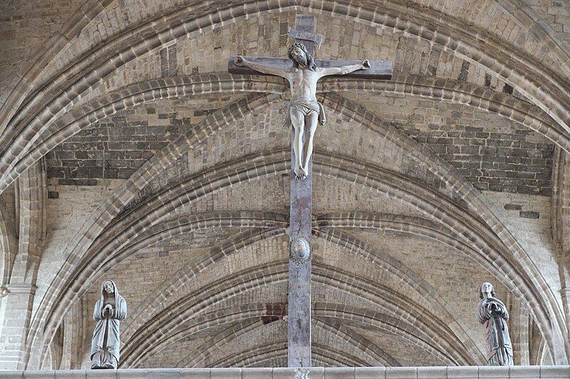 L'abbatiale conserve un jubé rare resté à son emplacement d'origine, lequel a été abaissé d'un peu plus d'un mètre pour ne pas isoler acoustiquement l'orgue du reste de la nef. Elle abrite également une danse macabre peinte sur trois panneaux, longue de vingt‑six mètres et datée du XVe siècle, située dans le bas‑côté gauche du chœur; la fresque oppose des religieux et des laïcs à la mort figurée non comme un squelette mais comme un transi. Les voûtes de la nef sont en arc surbaissé; les collatéraux atteignent la même hauteur que le vaisseau central et l'absence de chapiteaux à la naissance des voûtes confère à l'ensemble une acoustique particulière.