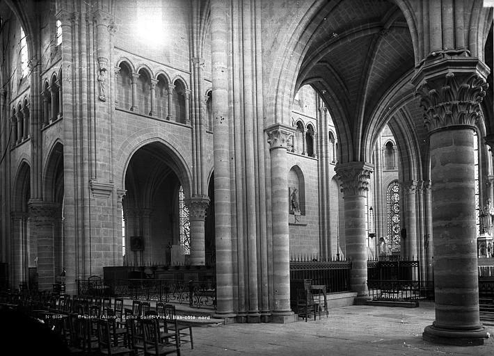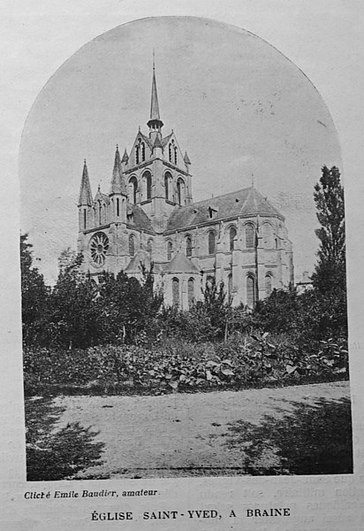 L’ancienne abbaye de Saint-Yved, située à Braine (Aisne), est un des exemples les plus remarquables du premier art gothique. Démarquée par son homogénéité, l’église abbatiale fut reconstruite à partir de 1185-1190 à l’initiative d’Agnès de Baudement, épouse de Robert Ier de Dreux ; l’édifice est probablement achevé vers 1208 et consacré le 31 août 1216 sous le double vocable de la Vierge et de saint Yved. Le patronage princier explique la rapidité du chantier et la conception de l’ensemble comme église abbatiale, nécropole princière et sanctuaire lié à la présence de reliques, celles de saint Yved ayant été apportées à Braine au IXe siècle. L’implantation de chapelles obliques entre bras du transept et chœur, déjà observée à Saint‑Vincent de Laon et à Mons‑en‑Laonnois, illustre l’influence du plan et sera reprise ensuite dans d’autres constructions religieuses.