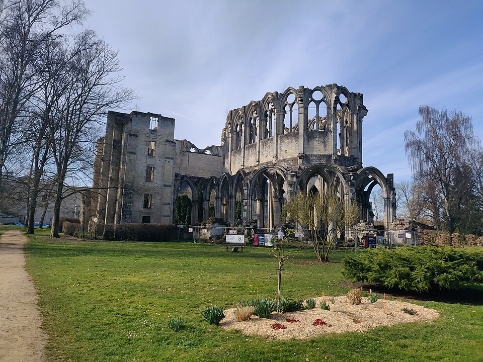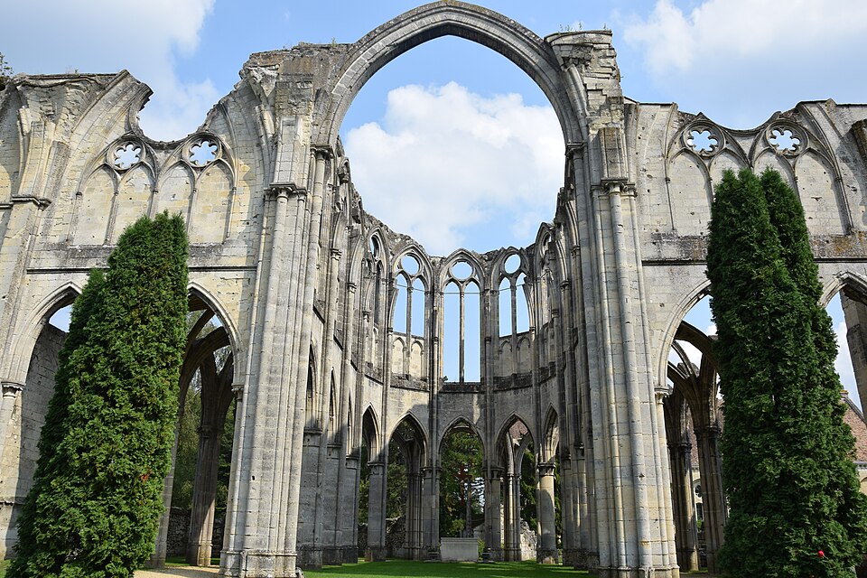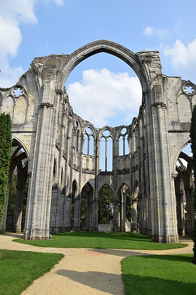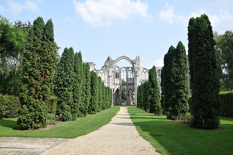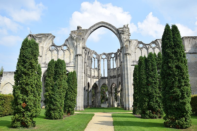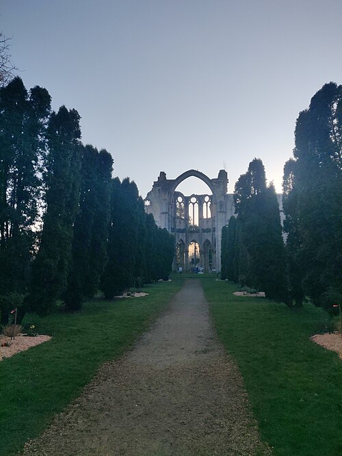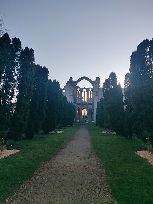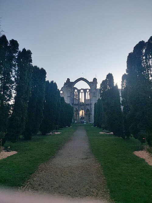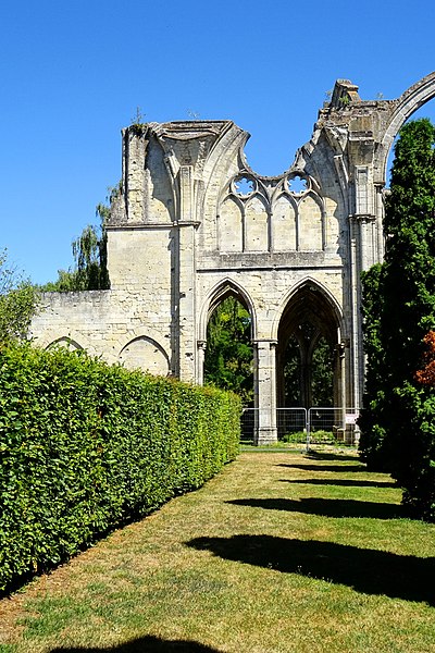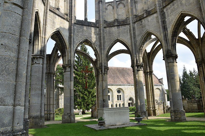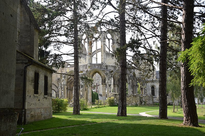 L'abbaye Notre-Dame d'Ourscamp est une ancienne abbaye cistercienne située à Chiry-Ourscamp, dans l'Oise. Elle a été fondée en 1129 à l'initiative de Simon de Vermandois, évêque de Noyon, et implantée par des moines venus de Clairvaux sous l'égide de saint Bernard ; elle constitue la huitième fille de Clairvaux et l'une des plus anciennes fondations cisterciennes de Picardie. Le site succède à un ancien oratoire attribué à saint Éloi ; une légende locale rapporte que, lors de sa construction, saint Éloi aurait réussi à atteler un ours. Du XIIe au XIIIe siècle, plusieurs campagnes de construction se succèdent et donnent lieu à trois églises abbatiales successives ; l'église reconstruite entre 1154 et 1201 n'a laissé que des éléments fragmentaires, tandis que le chœur, rebâti entre 1233 et 1257, conserve des vestiges substantiels. L'infirmerie conventuelle, dite « salle des morts », la basse-cour et son portail figurent parmi les parties médiévales encore perceptibles. L'infirmerie, vaste salle voûtée en ogives à trois nefs et dotée de niches pour les lits, est considérée comme l'unique infirmerie gothique cistercienne de France restée intacte. Au XIIIe siècle, l'abbaye possédait d'importantes dépendances et domaines agricoles, et compta un temps plusieurs centaines de moines ; elle est néanmoins pillée et incendiée lors de la Grande Jacquerie de 1358. Les logis abbatial et conventuels connaissent des remaniements aux XVIIe et XVIIIe siècles : vers 1745-1748 le cardinal de Gesvres réédifie des bâtiments conventuels et abbatiaux et fait élever la grille d'honneur, tandis qu'en 1748 un logis destiné à l'abbé commendataire est édifié en prolongement du logis abbatial. La Révolution chasse les derniers moines en 1792 ; les biens, mis en vente comme biens nationaux, reviennent à l'État lorsque les acquéreurs ne peuvent régler leur achat, et certains bâtiments sont alors utilisés comme hôpital. Au début du XIXe siècle, Maximilien Radix de Sainte-Foix fait abattre la nef pour créer des ruines « romantiques » et transforme l'abbaye en filature ; l'activité industrielle se développe au cours du siècle suivant. L'occupation allemande et les bombardements de la Première Guerre mondiale endommagent notamment l'infirmerie et les logis des XVIIe et XVIIIe siècles ; des travaux de restauration sont menés entre 1920 et 1936. La congrégation des Serviteurs de Jésus et de Marie s'installe dans les lieux dans les années 1930-1940 ; le comte Paul Biver acquiert le domaine en 1940 et le confie en 1943 à cette congrégation. L'ensemble des ruines de l'abbaye fait l'objet d'un classement au titre des monuments historiques dès la liste de 1840, puis la protection est étendue en 1943 aux bâtiments conventuels, à leurs dépendances, aux terrains alentour et à la grille d'entrée ; les douves sèches et les murs de clôture ont été classés en 2004, de même que le portail médiéval de la basse-cour. Sur le plan architectural, l'église abbatiale, qui mesurait autrefois 102 m de longueur, 24 m de largeur et 16 m de hauteur, ne subsiste que par le chœur gothique dont l'élévation primitive comprend une grande arcade et des fenêtres hautes jumelées surmontées d'un oculus ; le triforium est d'intervention postérieure. L'ancienne infirmerie, transformée en chapelle, conserve un retable de Gaspard de Crayer (1640) et un haut-relief en marbre illustrant la légende de l'ours, dont l'interprétation a parfois été liée à une allusion astronomique. Les bâtiments conventuels visibles aujourd'hui datent pour l'essentiel du XVIIIe siècle autour du logis abbatial ; des grilles romanes sont conservées au musée Le Secq des Tournelles à Rouen. L'abbaye, fille de Clairvaux, a elle-même donné naissance à Beaupré, Mortemer et Froidmont et possédait notamment des maisons à Paris, dont une maison d'Ourscamp rue du Renard et un hôtel d'Ourscamp rue François-Miron, ce terrain ayant été reçu en 1248 et l'hôtel construit vers 1585. L'orgue de la chapelle, instrument néoclassique représentatif de la facture française du milieu du XXe siècle, a été réalisé par le facteur Rœthinger en 1947-1948, inauguré en 1949 et a fait l'objet de travaux de rénovation et d'entretien à plusieurs reprises ; il a subi des dégradations lors des inondations de 2001 et nécessite des interventions complémentaires. Affiliée à la paroisse Saint-Éloi de Noyon, l'abbaye abrite aujourd'hui une communauté religieuse qui propose retraites et activités pastorales et participe à la valorisation et à la restauration du site.