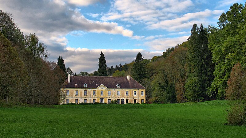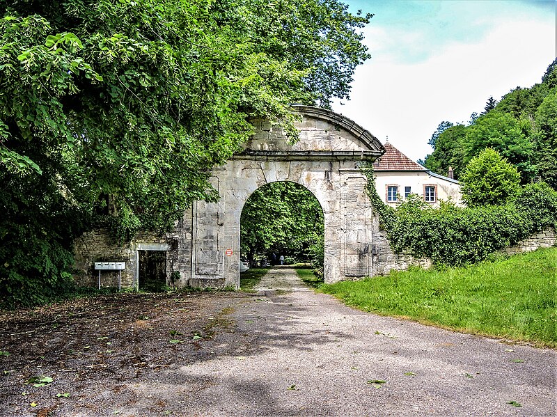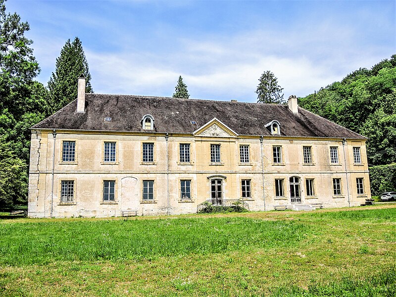 Le bâtiment conventuel, appelé « château » sous la famille de Ganay, présente une façade principale asymétrique et conserve des éléments intérieurs remarquables malgré d'importantes pertes entre 1957 et 1993 : au rez‑de‑chaussée s'alignent réfectoire, grand salon orné de boiseries signées « Sieur Faivre », vestibule et salons, tandis qu'un bel escalier en pierre de Chailluz conduit à une galerie à l'étage desservant les chambres. Un petit bâtiment au nord abritait le lavoir, la boulangerie et la cave à vin, et la porte d'entrée de 1764 ouvre sur l'allée bordée de platanes menant aux écuries et greniers. Le réseau hydraulique, alimenté par une source captée au nord‑est du lavoir et considéré jusqu'au XIXe siècle pour ses vertus, est conservé dans son état du XVIIIe siècle.