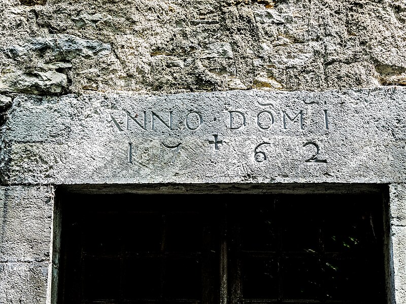 Sur la façade sud‑est du bâtiment conventuel subsistent un pilastre avec un chapiteau à décor végétal (inséré au XIXe siècle), une console à ogives et trois portes ouvrant sur le transept et le chœur, dont une porte de sacristie à jambage médiéval. Un sondage archéologique de 1986 a mis au jour une partie du sol post‑médiéval de l'église et a montré que le cloître avait un plan carré intérieur de 43,5 mètres de côté; en 2012 un jambage de porte avec seuil a été repéré 1,4 m sous le niveau actuel. Au plus tard au XVIe siècle l'aile des frères convers, au nord‑ouest, fut transformée en logis abbatial, auquel l'abbé César de Marnais de La Bastie ajouta un pavillon ; des projets ultérieurs n'ont pas toujours été réalisés.