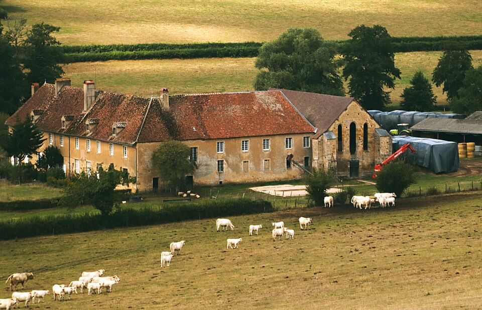 L'abbaye occupe un fond de vallon ouvert sur la vallée de l'Ognon, sur un terrain rectangulaire d'environ huit hectares entouré d'un mur d'enceinte, à proximité des villages de Cirey et de Chambornay ; l'orientation des bâtiments suit la topographie, le chœur étant tourné vers le sud‑ouest. Des vestiges médiévaux subsistent dans les bâtiments actuels, mais l'église abbatiale romane, consacrée en 1143, est mal documentée : des sources du XVIIIe siècle évoquent trois nefs voûtées et trois autels, tandis que des visites antérieures mentionnent au moins six chapelles latérales; l'édifice, long d'au moins 60 mètres, a probablement été raccourci au XVIIe siècle. Quelques éléments de sculpture et des ogives attestent que l'église n'était pas d'une simplicité totale au regard des canons cisterciens.