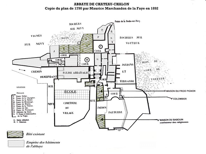 Il subsiste aujourd'hui quelques vestiges de l'abbaye : le porche d'entrée, l'emplacement de la maison de la dernière abbesse, la maison de l'intendant, des façades et un pigeonnier du bâtiment abbatial dit Froid Pignon. La tradition attribue aux abbesses l'introduction du cépage dit Tokay de Hongrie sur les coteaux de Château‑Chalon, origine légendaire du savagnin, cépage utilisé pour l'élaboration du vin jaune ; l'ampélographie moderne rattache toutefois le savagnin à la famille des traminers, mais l'abbaye a joué un rôle avéré dans le développement du vignoble et a contribué à faire de Château‑Chalon un haut lieu du patrimoine jurassien.