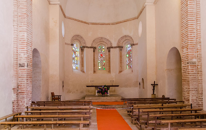 Construite entièrement en briques roses, matériau inhabituel dans une région où la pierre abonde, l'abbaye est un édifice roman qui témoigne de l'influence mudéjare dans la mise en œuvre de la brique. Le chœur et une travée de la chapelle ont été conservés et présentent un appareillage très proche des modèles mudéjars.
