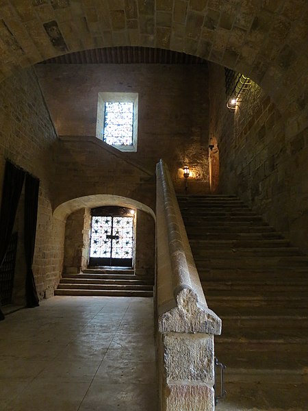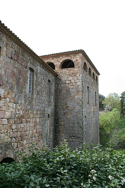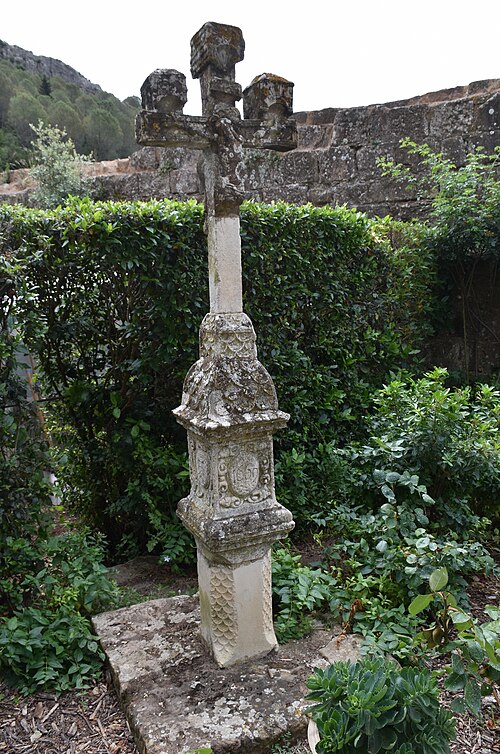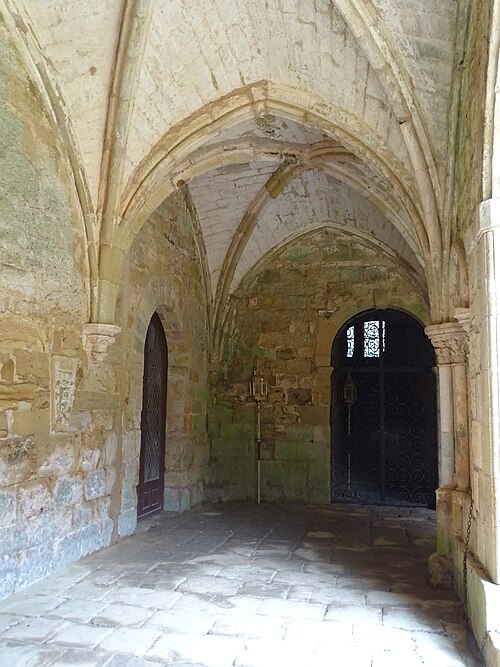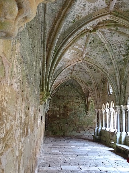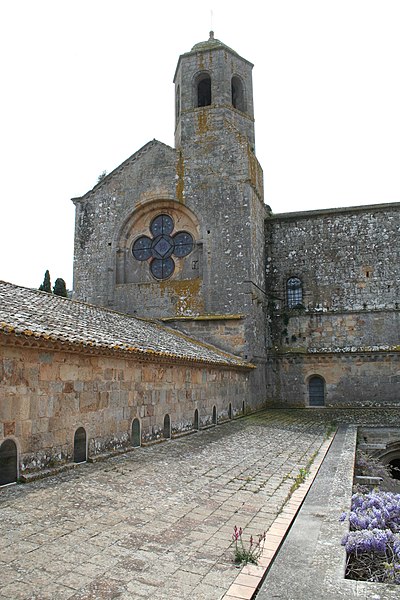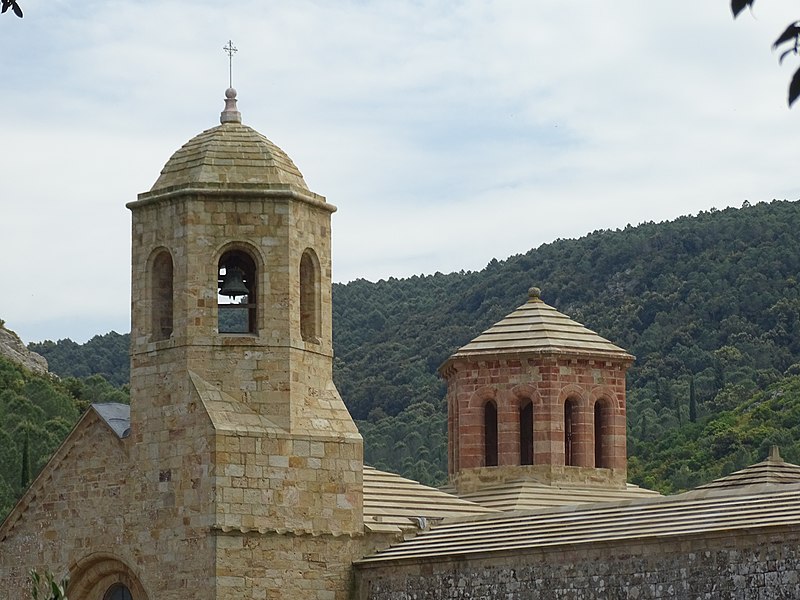 Ancienne sacristie, passage et cage d'escalier situés de part et d'autre de la salle capitulaire ; quatre corps de bâtiments fermant la cour dite cour Louis XIV, y compris la partie qui enjambe le lit du torrent à l'est et le moulin au nord ; éléments décoratifs (immeubles par destination) du corps de bâtiment situé entre le cloître et la cour Louis XIV, à savoir : boiseries du salon vert, stucs et boiseries du grand salon avec les peintures de Burgstaal, vitraux composés de papiers aquarellés entre deux plaques de verre fermant les baies de la salle de musique (ancien dortoir des moines) , panneaux de céramiques historiées et décoratives du grand salon et de l'office, boiseries de la bibliothèque ; portail d'entrée de l'abbaye ; cour d'honneur et décor architectural qui la ferme ; sol de la grande roseraie ; parc et terrasses étagées avec leurs statues et fabriques ; vestiges du corps de bâtiment médiéval qui enjambait le torrent à l'est du cloître ; chapelle du père Jean ; mur de clôture ; puits au sud de l'abbaye ; deux tours cylindriques ouest et nord-est ; ferme avec les deux ponts médiévaux qui la relient à l'abbaye (cad. G 320, 331, 332, 334, 336 à 338, 340) : inscription par arrêté du 15 septembre 1988 - Ensemble des parties bâties situées à l'intérieur de l'enceinte de l'abbaye, y compris le porche d'entrée, l'aire du cloître, les murs d'enceinte et les terrasses étagées, à l'exception - en ce qui concerne le corps de bâtiment situé entre le cloître et la cour dite "Louis XIV" - des éléments décoratifs intérieurs suivants : les boiseries et les toiles peintes du salon vert, les stucs et boiseries du grand salon avec les peintures de Burgstahl, les vitraux de papier aquarellés entre deux plaques de verre fermant les baies de la salle de musique (ancien dortoir des moines) , les panneaux de céramiques historiées et décoratives du parloir et de l'office, les boiseries de la bibliothèque (cad. G 336 à 338) : classement par arrêté du 21 février 2001