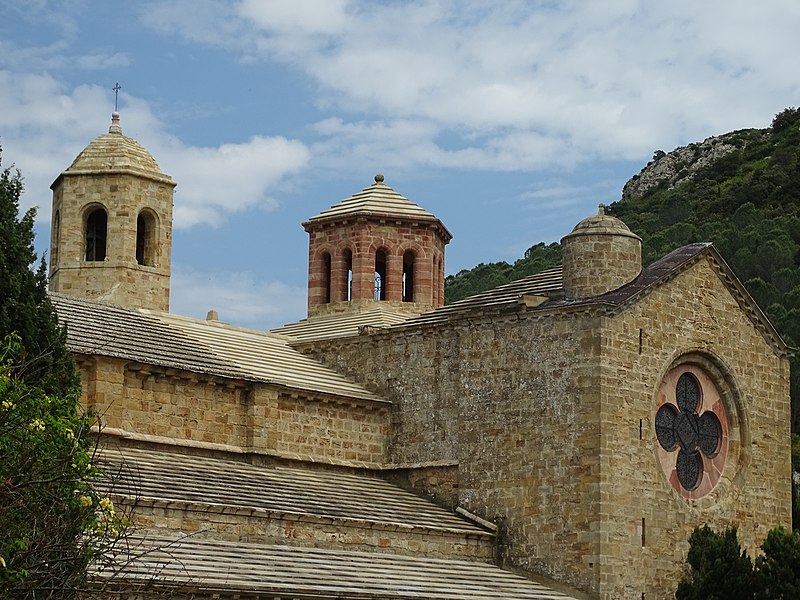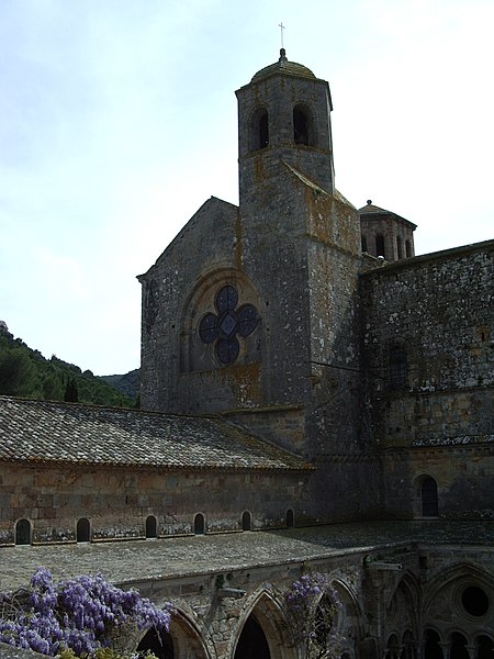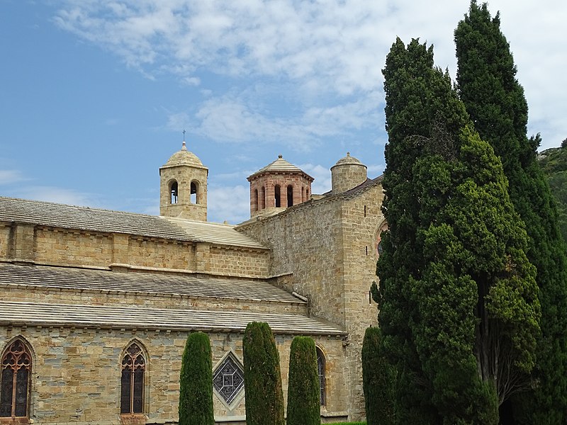 Fondée à la fin du XIe siècle sur la source appelée Fons frigidus, l'abbaye naît d'une donation des seigneurs de Narbonne et de terres accordées par Aymeric, vicomte de Narbonne. Le pape Innocent II confirme les premières donations et l'abbaye s'enrichit rapidement de possessions en pays narbonnais, en Fenouillède, en Roussillon et en Catalogne. Placée sous la dépendance de l'abbaye de Grandselve dès 1143, elle s'affilie à l'ordre cistercien vers 1146. Dès le milieu du XIIe siècle et au XIIIe siècle, Fontfroide reçoit d'importantes libéralités — notamment d'Ermengarde de Narbonne et d'Olivier de Termes — qui permettent de nouvelles constructions et l'extension de son domaine. En 1151 Fontfroide fonde le monastère de Poblet en Catalogne, puis Valbonne en 1242 ; au XIIIe siècle elle est abbaye mère de plusieurs maisons d'hommes et de moniales. Pendant la crise de l'hérésie albigeoise, l'abbaye joue un rôle central dans la défense de l'orthodoxie et connaît son apogée démographique avec près d'une centaine de moines et plusieurs centaines de frères convers. L'un de ses abbés, Jacques Fournier, accède plus tard au siège pontifical sous le nom de Benoît XII. Mise en commende en 1476, Fontfroide voit ses biens réunis au siège épiscopal de Perpignan au XVIIIe siècle. Vendue comme bien national à la Révolution, l'abbaye change de mains avant d'accueillir de nouveau une communauté cistercienne au XIXe siècle ; des bernardins s'y installent en 1858 mais sont expulsés en 1901. Acheteurs en 1908, Gustave Fayet et son épouse Madeleine d'Andoque entreprennent une vaste restauration — le cloître dès 1908, l'ensemble des bâtiments à partir de 1910 — et font de Fontfroide un foyer artistique où séjournent écrivains, musiciens et peintres tels qu'Odilon Redon et Richard Burgsthal. Fayet commande la décoration de plusieurs salles : la bibliothèque reçoit des peintures d'Odilon Redon en 1911, le grand salon et l'ancien réfectoire sont ornés de toiles de Burgsthal et d'autres décors d'époque. L'abbaye présente un plan formé de deux quadrilatères : le premier, médiéval, regroupe l'église, la salle capitulaire, la chapelle des Morts et le cellier occidental (XIIe siècle) ainsi que le cloître de la seconde moitié du XIIIe siècle ; le second réunit trois corps de bâtiments du XVIIIe siècle et un édifice du XIIe élevé au XVe siècle. À l'intérieur se succèdent des espaces aménagés à différentes époques, dont un salon vert aux boiseries du XVIIIe siècle, un grand salon peint, une salle à manger ornée d'azulejos et la bibliothèque redécorée au début du XXe siècle. L'architecture de Fontfroide illustre la transition entre le roman méridional et les innovations gothiques des cisterciens, en particulier dans les voûtements, et la salle capitulaire se rapproche d'exemples comme Escaladieu, Flaran ou Sylvanès. Classée au titre des monuments historiques depuis le milieu du XIXe siècle, l'abbaye reste aujourd'hui une propriété privée détenue par les descendants des Fayet et demeure membre de la Charte des abbayes et sites cisterciens d'Europe.