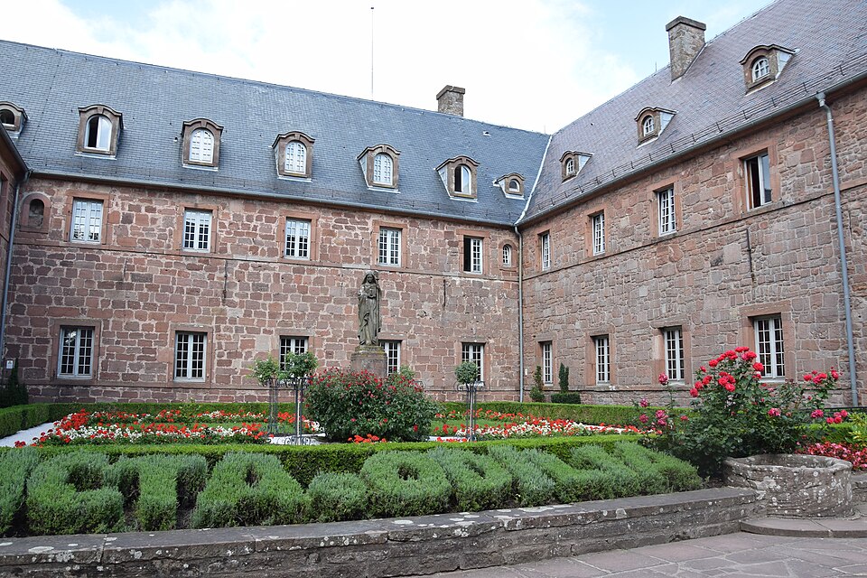 Le monastère de Sainte-Odile, dit Hohenbourg, se dresse sur le mont Sainte-Odile, dans la commune d’Ottrott (Bas-Rhin), sur un plateau rocheux protégé par l’enceinte du « mur païen ». Fondé en 680 par sainte Odile sur l’emplacement d’un ancien château fort appelé Hohenbourg ou Altitona, le sanctuaire devint rapidement un lieu de pèlerinage. Au VIIIe siècle sont attestés l’église conventuelle et plusieurs chapelles, ainsi que l’adoption de la règle de saint Benoît. Après des reconstructions aux XIe et XIIe siècles, le centre monastique connaît au XIIe siècle un important programme de construction sous l’abbesse Relinde, qui introduit la règle de saint Augustin, puis sous Herrade de Landsberg, auteure du Hortus deliciarum. De cette phase datent notamment la base des murs de l’église, la chapelle de la Croix, le voûtement de la chapelle Saint-Jean-Baptiste et les chapelles des Larmes et des Anges. Les Prémontrés sont appelés à desservir le monastère à partir de 1178, et concourent aux travaux et à la vie religieuse ultérieure. Le site subit de multiples destructions par des incendies et des pillages au cours des siècles, causés tantôt par des sièges ou des bandes armées, tantôt par des sinistres accidentels ; ces épisodes entraînent à plusieurs reprises des reconstructions importantes. Après un nouvel incendie en 1681, l’église conventuelle est reconstruite entre 1687 et 1696 et la façade ouest, la sacristie et les ailes conventuelles sont remaniées aux XVIIe et XVIIIe siècles, plusieurs éléments portant des dates d’inscription. Les XIXe et XXe siècles voient la restauration et l’extension des bâtiments : bâtiment d’entrée (années 1734–1738), grands travaux de début XXe siècle (1904–1908), surélévation du clocher et tourelle d’escalier datées de 1924, puis un vaste projet de rénovation entre 1930 et 1937 confié à l’architecte Robert Danis pour améliorer l’accueil des pèlerins. À la Révolution, le monastère est vendu comme bien national et les reliques doivent être mises à l’abri ; le domaine change plusieurs fois de mains avant d’être racheté en 1853 par l’évêque André Raess, ce qui permet la reprise du pèlerinage et des activités religieuses. Dès 1840, les chapelles et éléments sculptés furent protégés au titre des monuments historiques, et l’église conventuelle a été classée en 1997 ; l’église est élevée au rang de basilique pontificale en 2006. Une communauté religieuse, les Sœurs de la Croix, assure la vie monastique et l’accueil des pèlerins de 1889 à 2015, après quoi la gestion liturgique et l’accueil sont organisés par un recteur, un chanoine et une équipe permanente. Le sanctuaire poursuit l’adoration perpétuelle instituée en 1931, accueille pèlerins et touristes et a maintenu ses offices et ses traditions, y compris lors des contraintes de la pandémie de 2020–2021, période qui a coïncidé avec le jubilé marqué pour le 1300e anniversaire de la mort de sainte Odile. Aujourd’hui, le monastère présente un ensemble architectural et spirituel constitué de constructions allant du VIIIe au XXe siècle, centrées autour des chapelles anciennes, du cloître et de la basilique, témoignant de l’histoire complexe et continue du site.
