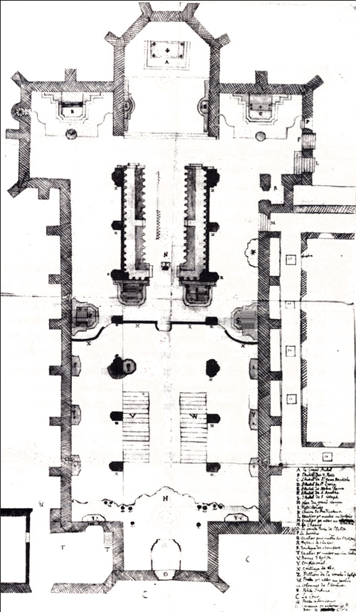 L'abbatiale romane, consacrée en 1124, fut endommagée par des séismes au début du XIVe siècle et partiellement reconstruite en style gothique, avec un chevet à pans coupés ; cette seconde consécration eut lieu en 1346. L'église, réservée aux moines, mesurait environ 62 m de longueur sur 20 m de largeur et comptait 18 autels en 1525. Le portail occidental, remanié vers 1679 et sculpté en 1721, fut réutilisé dans l'église de Raedersdorf ; de l'ensemble des bâtiments conventuels reconstruits après l'incendie de 1699, dirigé par les abbés Antoine de Reynold puis Nicolas Delfis entre 1709 et 1720, on ne connaît plus que des vues anciennes.