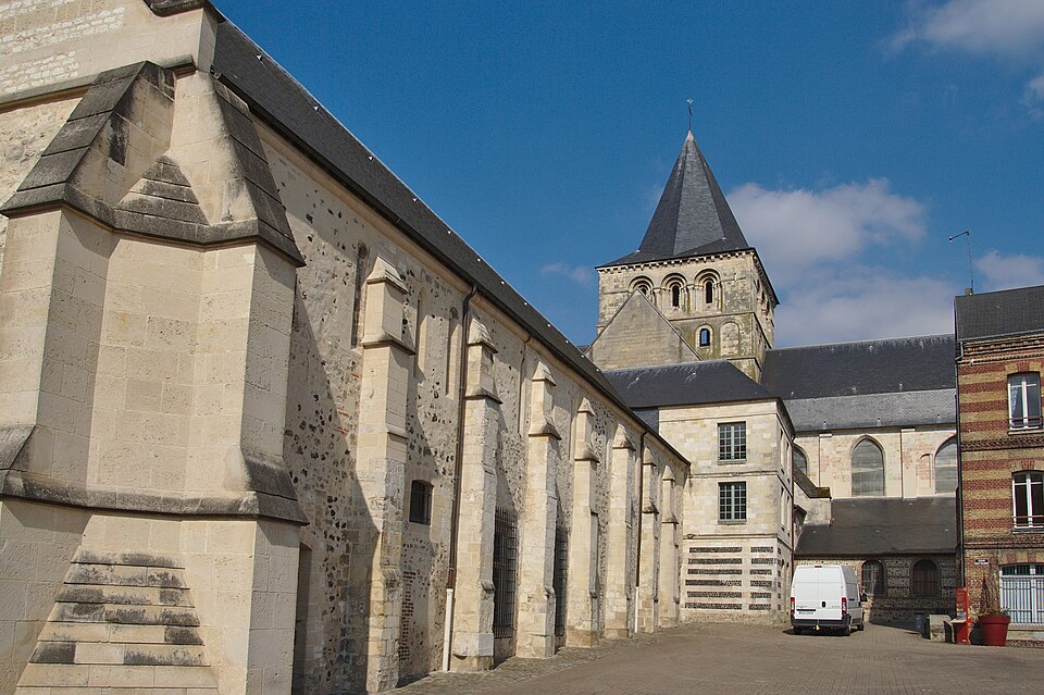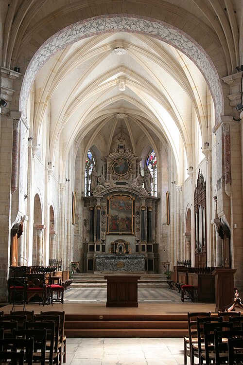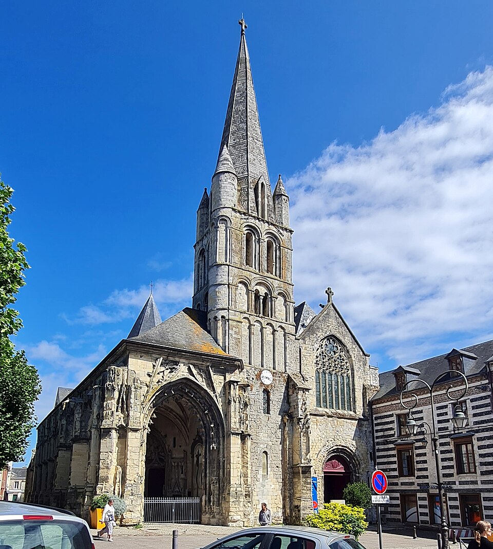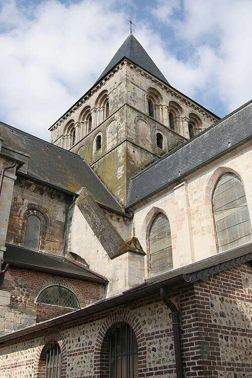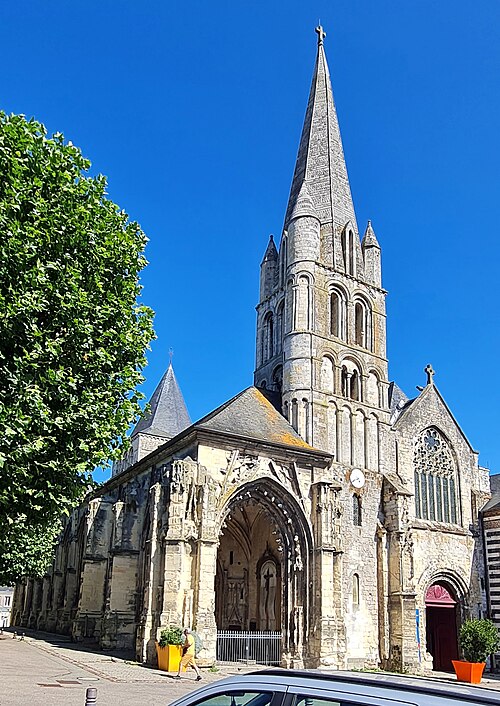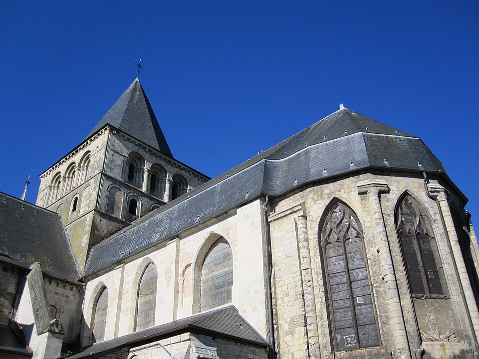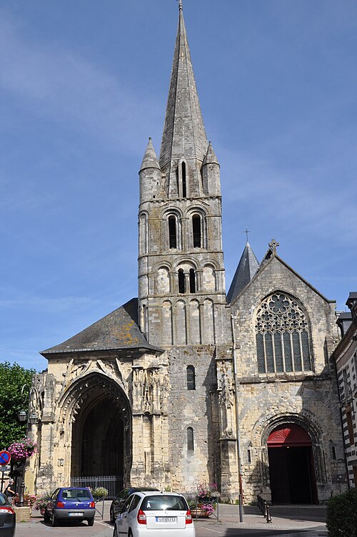 L'église abbatiale conserve un plan d'origine bénédictine remanié au XVe siècle et présente, à la croisée, un imposant clocher de la fin du XIe siècle. La façade, de la première moitié du XIIe siècle, devait comporter deux tours mais seule la tour nord subsiste ; un grand remplage gothique percé au XIVe siècle surmonte le portail roman. Dans la nef, le côté sud, restauré au XIXe siècle, reste roman tandis que l'ensemble de la nef, de style gothique flamboyant, est éclairé par de grandes fenêtres ouvrant sur six chapelles contiguës. Les voûtes et les arcs témoignent des remaniements successifs : une voûte du XVIIe siècle masque la voûte du XIIe siècle à la croisée, les bras du transept sont couverts de voûtes d'ogives archaïques et l'arc en plein cintre de l'absidiole sud présente vingt claveaux sculptés. Le chœur, profond de trois travées et fortement remanié au XVIIe siècle, laisse cependant deviner sa structure romane primitive. L'orgue, réalisé par Louis Debierre, a vu son centenaire célébré en 1992 par un récital de Pierre Pincemaille.