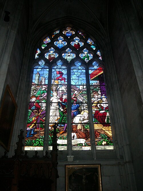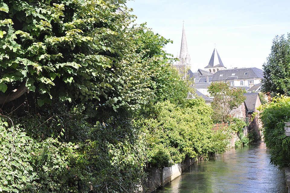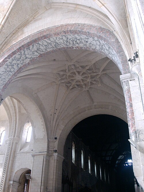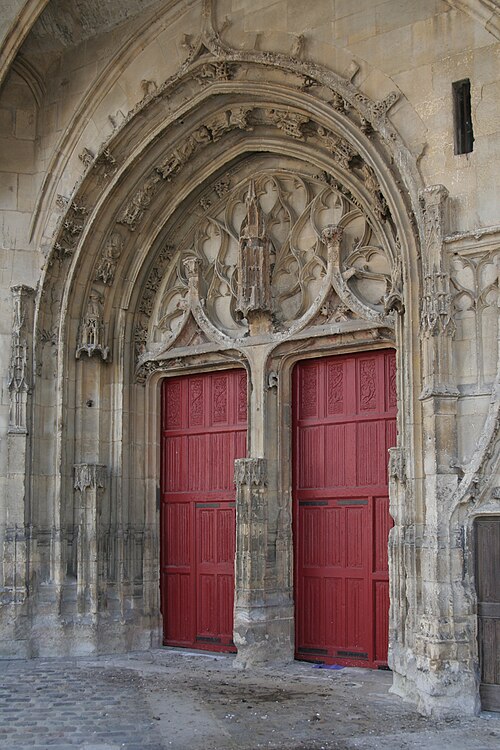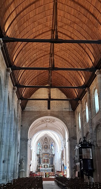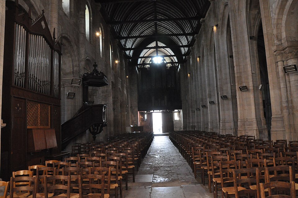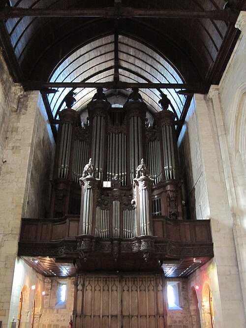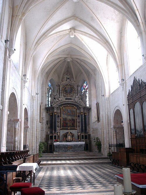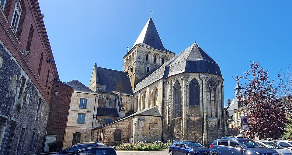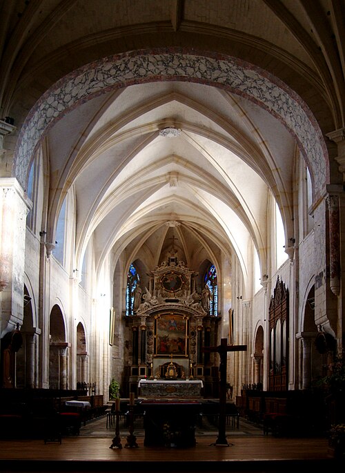 L'église abbatiale conserve un plan d'origine bénédictine remanié au XVe siècle et présente, à la croisée, un imposant clocher de la fin du XIe siècle. La façade, de la première moitié du XIIe siècle, devait comporter deux tours mais seule la tour nord subsiste ; un grand remplage gothique percé au XIVe siècle surmonte le portail roman. Dans la nef, le côté sud, restauré au XIXe siècle, reste roman tandis que l'ensemble de la nef, de style gothique flamboyant, est éclairé par de grandes fenêtres ouvrant sur six chapelles contiguës. Les voûtes et les arcs témoignent des remaniements successifs : une voûte du XVIIe siècle masque la voûte du XIIe siècle à la croisée, les bras du transept sont couverts de voûtes d'ogives archaïques et l'arc en plein cintre de l'absidiole sud présente vingt claveaux sculptés. Le chœur, profond de trois travées et fortement remanié au XVIIe siècle, laisse cependant deviner sa structure romane primitive. L'orgue, réalisé par Louis Debierre, a vu son centenaire célébré en 1992 par un récital de Pierre Pincemaille.