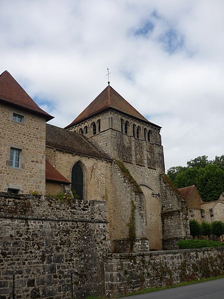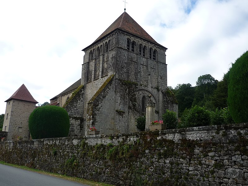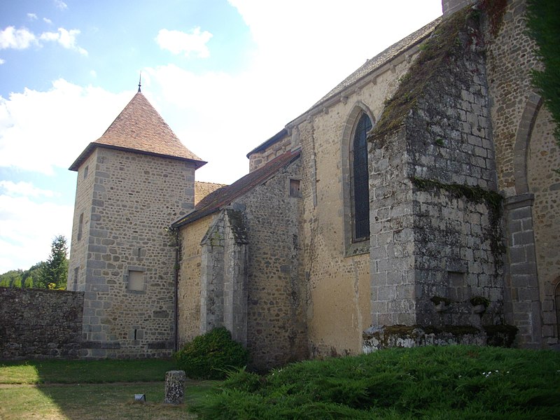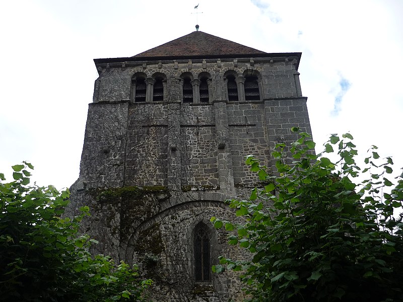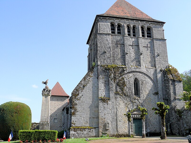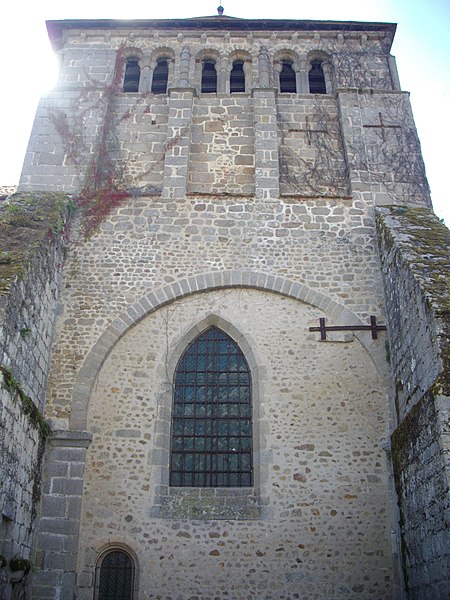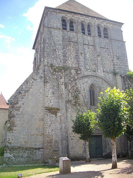 L'église de l'Assomption, d'origine ancienne, conserve des éléments datés des XIIe et XVe siècles : le chœur voûté, le transept, le chevet, le clocher carré et des vestiges de la nef, organisés sur un plan en croix latine, tandis que le portail relève du XVe siècle. Le clocher, placé à la jonction du chœur, des transepts et de la nef, est soutenu par quatre piliers et ouvert, au sommet, par vingt-quatre baies romanes disposées en arcatures groupées par deux. L'origine du monastère remonte à 997 lorsque Boson II, comte de la Marche, le donna à l'abbaye Saint-Pierre d'Uzerche ; quelques fragments de cette première église subsistent encastrés dans les façades du chœur, parmi lesquels une stèle funéraire et d'autres débris antiques. En 1113 le monastère se sépare d'Uzerche ; au XIIe siècle sont construits ou reconstruits le chœur, le transept et le clocher, la coupole ayant été ajoutée ultérieurement tandis que la nef était couverte en charpente. La façade fut détruite lors de la Praguerie en 1440 puis restaurée en 1449 avec la construction du portail. L'abbaye connut ensuite des troubles internes et passa en commende en 1559. En 1591, lors d'un siège mené par Gaspard Foucaud, gouverneur de la Marche, la nef et le transept furent incendiés et s'effondrèrent ; l'édifice fut ensuite restauré en réemployant les matériaux issus des destructions et est resté dans cet état. L'ensemble monastique, d'abord bénédictin, fut pillé et laissé à l'abandon après ces événements ; des pierres furent récupérées par les habitants, accentuant les dégradations. Quelques moines de l'observance clunisienne se réinstallèrent en 1610 et entreprirent une reconstruction à partir de 1612, l'essentiel des travaux semblant achevé vers le milieu des années 1610, le dortoir n'étant terminé qu'en 1648. La communauté resta toujours très réduite et dut affronter les fréquentes contestations avec les abbés commendataires ; la maison fut finalement dissoute à la fin de l'Ancien Régime, les scellés apposés en 1788, puis vendue comme bien national en 1790. Rendue au culte sous le Directoire, l'ancienne abbatiale devint église paroissiale en 1844 ; les derniers vestiges de la nef furent alors rasés et remplacés par un jardin planté de tilleuls marquant l'emplacement supposé des piliers. Dans ce jardin se trouvent aujourd'hui le monument aux morts de la commune, une borne leugaire gallo-romaine indiquant l'ancienne distance d'Ahun à Limoges et une stèle funéraire gallo-romaine enchâssée dans la paroi du porche. Le principal intérêt de l'église réside dans ses boiseries sculptées, classées parmi les monuments historiques depuis 1889 : commandées par les prieurs Jean et Étienne Le Moyne, elles ont été réalisées en deux campagnes (1673-1674 et 1678-1681) par l'atelier du sculpteur auvergnat Simon Bouer. De la première campagne provient le grand retable à colonnes torses ; la seconde a livré les entourages des portes des chapelles latérales, vingt-six stalles richement sculptées de visages, motifs floraux et animaux fantastiques, le jubé de 1681, ainsi que le lutrin et un Christ biface, formant un remarquable ensemble du baroque provincial. Recouvertes d'une couche d'enduit pendant la Révolution, ces boiseries furent difficilement dégagées : une tentative de décapage en 1896 échoua, puis l'abbé Victor-Julien Malapert, curé de 1904 à 1963, mena la restauration qui leur rendit leur aspect d'origine ; un nettoyage et un traitement du bois ont été réalisés plus récemment pour protéger cet héritage. Les monogrammes des religieux ayant commandé les travaux sont gravés sur la partie inférieure des boiseries, de chaque côté en avant des stalles.