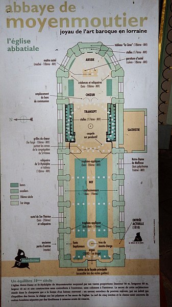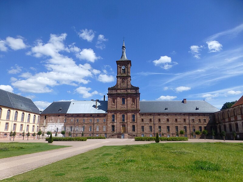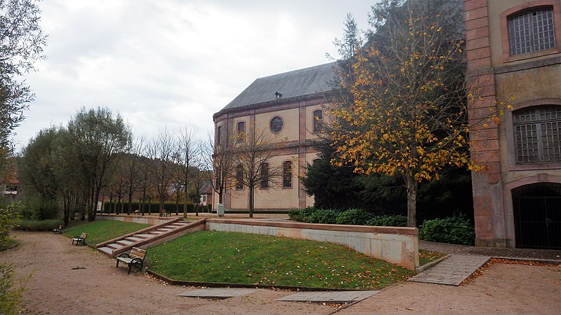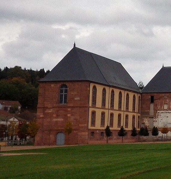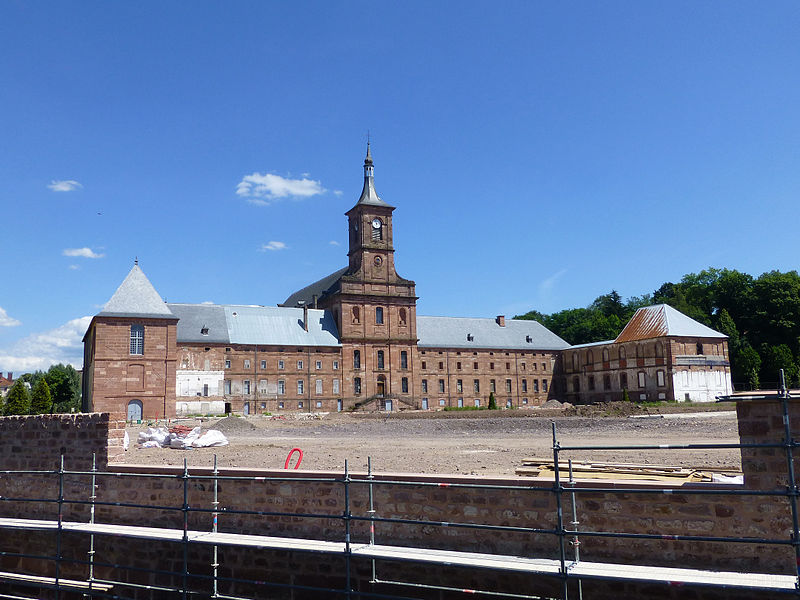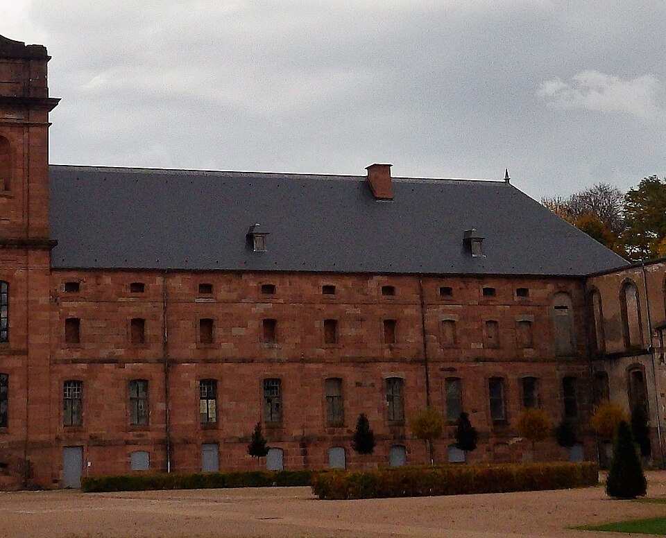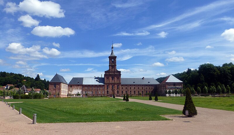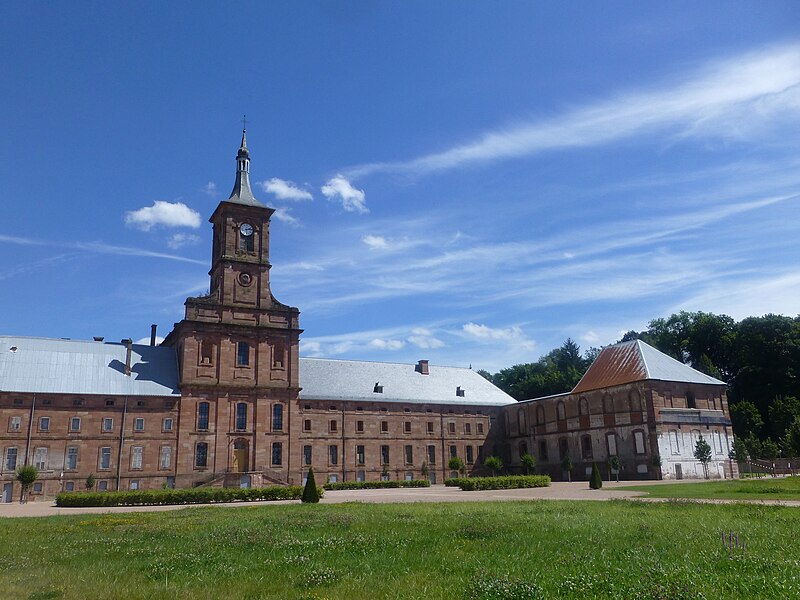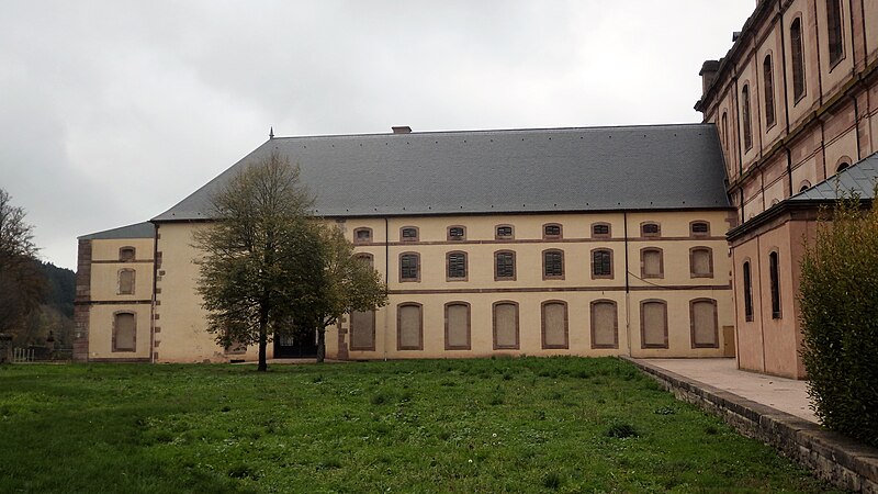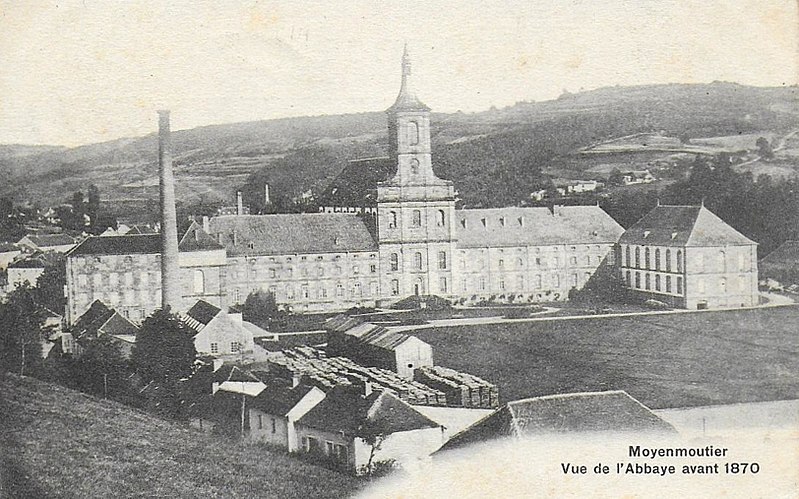 L'abbaye Saint-Hydulphe de Moyenmoutier est une ancienne abbaye bénédictine située dans les Vosges qui a accueilli jusqu'à 300 religieux. Fondée au VIIe siècle par saint Hydulphe à partir d'un ermitage, elle adopta la règle de saint Benoît et se développa autour de plusieurs églises et prieurés. La tradition rapporte des donations locales favorisant l'implantation de la communauté, qui passa ensuite sous la protection des souverains carolingiens puis des ducs de Lorraine. Après des pillages et destructions, notamment par les Hongrois, l'abbaye fut réformée et reconstruite au Xe siècle par l'abbé Adalbert, qui rétablit la vie monastique et fonda la bibliothèque. Cette bibliothèque s'enrichit au fil des siècles de manuscrits remarquables, parmi lesquels figurent l'Évangéliaire pourpre et le Glossaire d'Épinal. Moyenmoutier connut des périodes de rayonnement intellectuel et spirituel, accueillant des réformateurs et des figures notables comme Guillaume de Volpiano et le cardinal Humbert. Malgré conflits, incendies et épidémies, l'abbaye conserva une activité importante ; elle fut restaurée et fortifiée au XIVe siècle et participa au renouveau religieux du XVIIe siècle avec la Congrégation de Saint-Vanne et Saint-Hydulphe. La période de la commende au XVIe et XVIIe siècles affaiblit la vie régulière, mais une réforme entamée au début du XVIIe siècle redonna vigueur spirituelle et culturelle à la communauté. Sous Hyacinthe Alliot et Humbert Belhomme, l'abbaye devint un centre savant et la bibliothèque atteignit un important fonds imprimé. L'ensemble que l'on voit aujourd'hui correspond à la troisième implantation, réalisée à la fin du XVIIIe siècle par l'architecte Ambroise Pierson ; l'abbatiale fut inaugurée en 1776. La Révolution entraîna l'inventaire et la vente des biens, la dispersion de la bibliothèque et la transformation des bâtiments : l'abbatiale fut conservée comme église paroissiale tandis que les autres corps de logis furent vendus et reconvertis. À partir du XIXe siècle l'ancienne abbaye accueillit une importante activité industrielle textile qui se poursuivit jusqu'au début du XXIe siècle. Après la cessation des activités industrielles en 2002, la commune acquit le site, fit classer les bâtiments et conduisit des opérations de dépollution, de restauration partielle et d'aménagement de jardins, dont un parc à la française inauguré en 2016. L'abbaye, bâtie en grès rose des Vosges, présente une façade ouest en U avec l'abbatiale au centre et des ailes conventuelles aux nord et sud. L'abbatiale, de facture baroque sobre, mesure environ 60 m de long, 16 m de large et 30 m de haut ; sa charpente en forme de coque inversée permet un vaste volume intérieur sans piliers. La nef à cinq travées et le chœur sont couverts de voûtes bombées ; l'orgue, les stalles anciennes, des châsses, tableaux et sculptures sont classés monuments historiques. Parmi les éléments remarquables figurent les stalles de 1698, la grille aux armes de la congrégation, la Pietà de Malfosse et des trophées-appliques provenant de la seconde abbaye. Les bâtiments conventuels nord comprennent le bâtiment des dames, la grange et des annexes agricoles restaurées extérieurement, tandis que le sud conserve l'emplacement du cloître détruit et la bibliothèque aujourd'hui en ruine. La bibliothèque, qui compta jusqu'à 11 000 volumes au XVIIIe siècle, a été dispersée à la Révolution ; une partie des collections et des boiseries se trouve désormais à Épinal, Nancy et Saint-Dié. L'oratoire Saint-Grégoire, édicule funéraire situé hors de l'enclos, contient un sarcophage en grès et a fait l'objet de restaurations récentes ; il est lié aux origines légendaires de la fondation. Vestiges de remparts, portail monumental et bâtiments agricoles témoignent des phases successives d'occupation et d'exploitation du site. Classée pour son abbatiale et ses bâtiments conventuels, l'abbaye conserve un fort potentiel patrimonial dont la valorisation dépend encore d'une réhabilitation intérieure et d'un projet d'affectation durable.