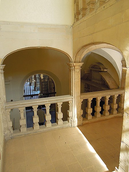 Emplacement, en réserve archéologique, du choeur de l'ancienne église sous la pelouse inscrite dans l'angle des rues Aux-Ours et Poncelet ; façades et toitures de la partie subsistante de l'ancienne église, y compris la ruelle et les contreforts qui l'enjambent, ainsi que la tour ; façades et toitures des bâtiments de l'ancienne abbaye, y compris le cloître et les deux terrasses au Nord-Ouest ; façades du bâtiment perpendiculaire à l'ancienne église, côté rue Aux-Ours, avec retour sur la rue Poncelet et sur cour et les parties de toitures correspondantes, ainsi que du corps d'entrée de l'ancienne abbaye rue Aux-Ours ; façades et toitures du corps de garde, rue Aux-Ours ; façades et toitures de l'ancien quartier des élèves ; escalier sur mur d'échiffre, porte de la bibliothèque, ancienne sacristie, ancienne salle capitulaire (bibliothèque) et corridor donnant accès rue Aux-Ours, dans l'aile Sud-Est du cloître ; ancien réfectoire et ancienne cuisine, dite aussi salle du prieur, dans l'aile Nord-Est du cloître ; six chambres avec leurs plafonds, dans l'aile Nord-Ouest du cloître (cad. 39 189, 191, 192) : inscription par arrêté du 24 février 1986