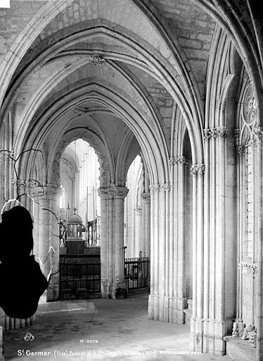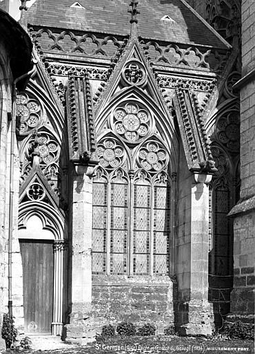 L'ancienne abbaye Saint‑Germer‑de‑Fly se situe en Hauts‑de‑France, dans le département de l'Oise, sur la commune de Saint‑Germer‑de‑Fly, en pays de Bray près de la limite avec la Seine‑Maritime et au nord du Vexin français. Fondée au VIIe siècle par saint Germer, elle connut plusieurs destructions et reconstructions : ravagée par les Vikings, relevée au début du IXe siècle par Anségise de Fontenelle, de nouveau ruinée en 851 et abandonnée pendant près de deux siècles, puis réédifiée en 1036 par Drogon, évêque de Beauvais. L'abbaye prospéra grâce aux donations et au retour d'une partie des reliques du fondateur en 1132, qui permit d'engager la construction d'une vaste abbatiale entre environ 1135 et 1206. Cette abbatiale, aujourd'hui devenue église paroissiale, et la chapelle de la Vierge, édifiée vers 1260 dans le style gothique rayonnant, restent les principaux témoignages de la puissance de la communauté médiévale dont la vie monastique s'éteint à la Révolution. Sur le plan architectural, l'abbatiale mêle éléments romans et premières expressions gothiques ; elle est considérée comme une réalisation caractéristique de la première génération gothique et comme l'un des plus anciens témoignages de l'art gothique en France. La chapelle de la Vierge, si elle n'apporte pas d'innovations formelles, constitue par la finesse de son exécution et la qualité de son décor un chef‑d'œuvre du style rayonnant et l'un des rares témoins des saintes‑chapelles et chapelles abbatiales du milieu du XIIIe siècle. Après la suppression des ordres religieux à la Révolution, les bâtiments conventuels furent largement démolis, mais l'abbatiale et la chapelle furent rendues au culte et conservées ; plusieurs dépendances subsistent et abritent aujourd'hui notamment la mairie et le musée des arts et traditions populaires. L'ensemble abbatial, et en particulier l'abbatiale et la chapelle, fut classé parmi les premiers monuments historiques dès la liste de 1840 ; d'autres vestiges ont été inscrits par arrêté en 1930 puis actualisés en 1983. L'église se trouve au nord de la place de l'Abbaye, face à une vaste pelouse bordée par la rue Michel‑Greuet, et la porterie ainsi que des bâtiments du XIXe siècle donnent sur la place de Verdun ; la cour intérieure dite place Niedenstein ouvre sur la façade occidentale, tandis que le parc de l'ancien domaine est aujourd'hui privé et non accessible au public. L'accès à l'abbatiale et à la chapelle se fait généralement par le vestibule qui relie les deux édifices ; un accès de plain‑pied pour les personnes à mobilité réduite existe via un portail au niveau du croisillon sud, utilisé lors de cérémonies. Les édifices ont fait l'objet de campagnes de restauration depuis le XIXe siècle et de travaux de consolidation au XXe et au XXIe siècle pour remédier à des désordres structurels et préserver vitraux et maçonneries. L'abbatiale conserve un important mobilier et plusieurs éléments protégés : stalles, dalles funéraires, clôture de chœur en fer forgé, autels, verrières, carreaux de sol médiévaux et statues, certains éléments ayant par ailleurs été déposés ou transférés en musée. Aujourd'hui l'église abbatiale est rattachée à la paroisse de La Trinité en Bray et demeure à la fois lieu de culte et objet de la conservation patrimoniale.
