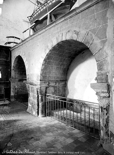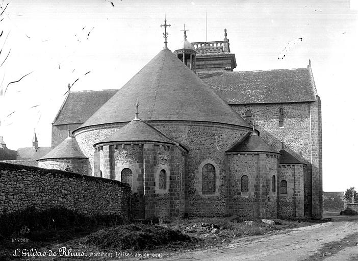 L'abbaye Saint‑Gildas de Rhuys, située dans le bourg de Saint‑Gildas‑de‑Rhuys (Morbihan), est une fondation bénédictine dont la légende relie la création à saint Gildas et à la deuxième vague migratoire en Armorique. Son histoire ancienne reste mal connue, mais l'édifice abbatial conserve aujourd'hui l'une des plus belles églises romanes de Bretagne. L'abbatiale est classée au titre des monuments historiques et divers objets de son mobilier ont été protégés au début du XXe siècle. L'histoire du monastère se découpe en trois grandes périodes. La première, relevant de l'époque bretonne primitive, voit l'existence d'une communauté liée à la figure de Gildas; si les archives et les fouilles manquent, la tradition, un inventaire de livres conservé à Paris et la mémoire des moines déplacés vers Berry plaident pour une présence monastique antérieure au Xe siècle. La deuxième période, mieux documentée, commence avec la restauration ordonnée par le duc de Bretagne et l'arrivée de moines de Fleury sous la conduite de Félix, qui relèvent ou reconstruisent le monastère. Au XIe siècle l'abbaye développe le culte de saint Gildas et d'autres saints, possède de nombreux prieurés et devient un centre monastique important. La troisième période voit l'instauration de la commende, la dégradation des bâtiments, puis une reprise par la Congrégation de Saint‑Maur; la chute du clocher suite à un coup de foudre provoque l'effondrement de la nef et entraîne une reconstruction menée par l'architecte Olivier Delourme. À la Révolution les moines sont expulsés et les bâtiments vendus comme biens nationaux; rachetés au début du XIXe siècle par la fondatrice des Sœurs de la Charité de Saint‑Louis, ils retrouvent une vocation religieuse, scolaire et hospitalière, puis font l'objet de restaurations par le service des Monuments historiques à la fin du XIXe siècle. Entre 1125 et 1133 Pierre Abélard fut nommé abbé pour relever la communauté; confronté à l'indiscipline des moines et aux violences locales, il dut finalement se retirer, laissant une empreinte dans la mémoire locale. Vers 1960 les Sœurs transforment l'établissement pour accueillir des personnes handicapées; ce service est transféré à Vannes en 1993, et les bâtiments sont ensuite rénovés et agrandis pour développer une vocation d'accueil hôtelier, culturel et spirituel. L'abbatiale conserve des éléments remarquables de l'art roman : le chœur, le transept nord, une trentaine de chapiteaux aux décors géométriques et plusieurs tombeaux. Le transept nord, la partie la plus ancienne, est un vaste volume du XIe siècle dont l'appareillage en opus sicatum se retrouve dans les parties basses du chevet; il fut remanié au début du XIIe siècle en réemployant des chapiteaux pour le rond‑point de l'abside. Le chœur présente deux travées droites avec arcades en plein cintre reposant sur des piles cruciformes, un rond‑point rythmé par cinq colonnes et un déambulatoire voûté desservant trois chapelles rayonnantes; il a été restauré au XIXe siècle dans le respect de son état ancien. La nef et la croisée de transept, refaites dans un style néo‑classique, s'harmonisent par leur sobriété avec les parties romanes subsistantes; la nef, couverte d'une voûte en berceau, remplace l'ancienne nef romane décrite par des textes. Les chapiteaux romans, en place ou déposés, déclinent des variations du modèle corinthien avec des motifs végétaux très stylisés; l'un d'eux, probablement issu de la nef, est sculpté de lions affrontés. Le mobilier et le trésor de l'abbaye, conservés en sacristie, constituent l'un des plus importants trésors reliquaires de Bretagne : châsses médiévales en bois lamé de cuivre et en argent, chef‑reliquaire et plusieurs reliquaires en argent et vermeil, un calice en or, une mitre de soie brodée datée du XVIe siècle mais traditionnellement attribuée à Abélard, ainsi que d'autres pièces liturgiques. Le retable monumental du croisillon sud, daté du premier tiers du XVIIe siècle, a été déplacé au XIXe siècle pour remettre en valeur le caractère roman de l'édifice. À l'extérieur, le clocher est inséré dans une tour‑porche qui réemploie probablement des éléments d'un ancien narthex, et le chevet présente trois chapelles absidales en cul‑de‑four. L'abbaye possédait de nombreuses dépendances et ressources : une paroisse donnée à Ambon, une vingtaine de prieurés répartis en Bretagne (parmi lesquels Ambon, Arz, Auray, Baud, Saint‑Sauveur de Locminé, Quiberon ou Rieux), des terres et métairies, un moulin à vent et des droits seigneuriaux sur certaines communautés. La liste des abbés, réguliers puis commendataires, est longue et documentée; y figurent des noms anciens comme Gildas le Sage, Félix de Rhuys, Vital, Pierre Abélard et de nombreux successeurs jusqu'à la fin de l'Ancien Régime. Malgré les recherches et une bibliographie abondante, des lacunes subsistent, notamment pour la période la plus ancienne du monastère.