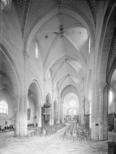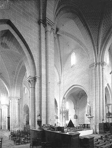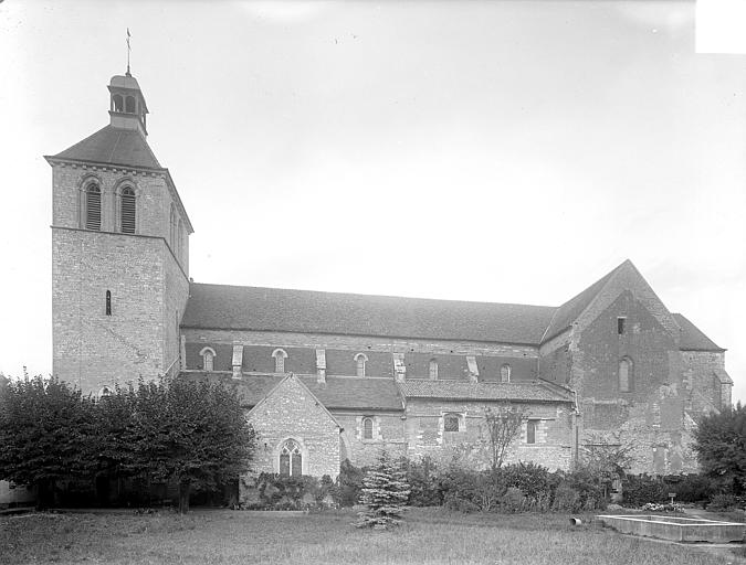 L'église actuelle, construite aux XIIe et XIIIe siècles sur des vestiges de la basilique gontranienne, a été restaurée au XIXe siècle puis au début des années 2000. Orientée à chevet plat, elle présente des chapelles entourant un transept aux bras non saillants ; la nef centrale compte cinq travées soutenues par des piliers carrés à colonnes engagées, grandes arcades brisées, fenêtres hautes et voûtes d'ogives, tandis que les bas-côtés sont voûtés en arêtes. Le porche occidental est surmonté d'un clocher carré élevé sur deux niveaux, qui abrite au premier étage la chapelle haute dédiée à saint Michel ornée de peintures médiévales ; la croisée est voûtée en ogives avec clés peintes et les chapiteaux sont sculptés de feuilles d'eau et de crochets. L'office y était, à l'origine, célébré en permanence (laud-perennis). L'église est classée monument historique sur la liste de 1862.