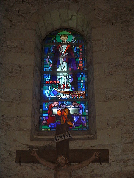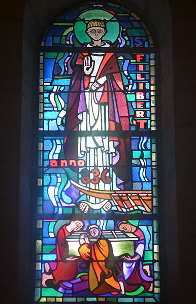 L'ornementation actuelle comprend des vitraux réalisés en 1936 par le maître-verrier Jacques Grüber, de facture néo-médiévale : le vitrail au-dessus du maître-autel représente saint Philibert bénissant et la barque transportant son sarcophage, tandis que le vitrail du déambulatoire figure sainte Anne. Un ex-voto gravé dans la pierre de tuffeau sous l'autel majeur est interprété comme une dédicace de l'église ou, plus rarement, comme un remerciement de pèlerin. L'abbatiale conserve des statues — dont une statue en bois de saint Philibert, une Vierge à l'Enfant polychrome et des statues provenant de la chapelle du manoir de l'Hommelais — ainsi qu'un tableau de la Déploration du Christ, anciennement au manoir et restauré après des dégradations. Les fouilles ont mis au jour plusieurs bénitiers datés des XIIe–XIIIe siècles, ainsi que des fonts baptismaux à deux cuves et un lavabo destiné aux pèlerins, dont la position élevée résulte des travaux de 1900 ; une clef carolingienne, dont la poignée rappelle le dessin de la nef, a également été retrouvée dans la crypte.