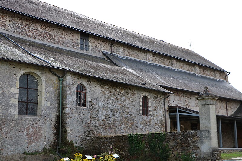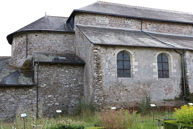 Autour de l'abbatiale subsistent des éléments de l'ancien ensemble conventuel : un jardin médiéval reconstitué, réparti en trois espaces entre l'abbatiale et la Boulogne, le prieuré construit en continuité de la façade sur l'emplacement du monastère incendié de 847 — restauré en 1762, vendu comme bien national en 1791, racheté par la commune en 1993 et désormais occupé par l'office de tourisme — et une dépendance en schiste des XVe–XVIe siècles qui abrite un musée d'avifaune et de minéralogie.