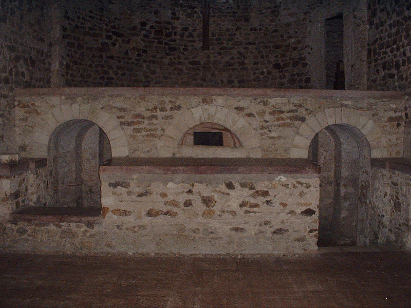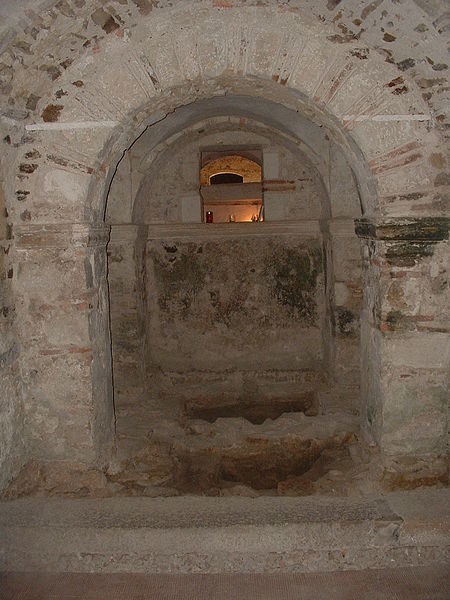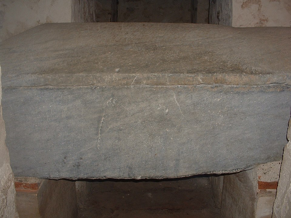 Le sarcophage lui-même est de style mérovingien, taillé dans un bloc unique de granit bleu provenant des carrières de Saint-Béat ; orné de deux croix mérovingiennes, il mesure 2,05 m de long pour 0,7 m de haut. Philibert, inhumé en 686 à Noirmoutier, fut exhumé en 836 et transporté en quatre jours jusqu'à Déas où il fut replacé dans ce sarcophage, qui resta vide après le départ des reliques pour Tournus et fut retrouvé lors des fouilles de 1865. Parmi les autres monuments funéraires figurent la dalle de Guntarius, couvrant la sépulture d'un moine inhumé entre les IXe et Xe siècles dans le chœur, et la pierre gravée de Guillaume Chupin datée de 1440, qui ne servit pas à son inhumation et fut utilisée comme table d'autel à partir de 1663, subissant des dommages à cette occasion.