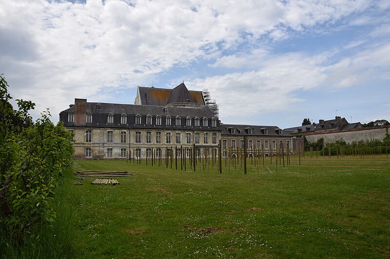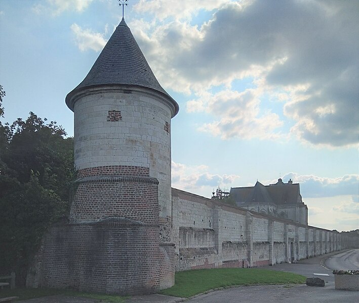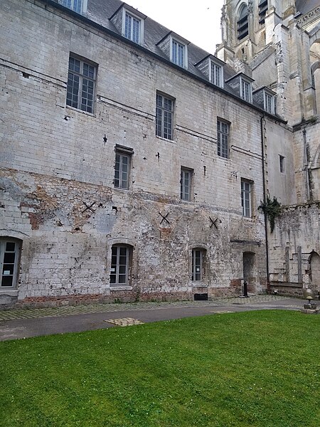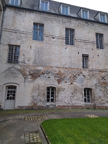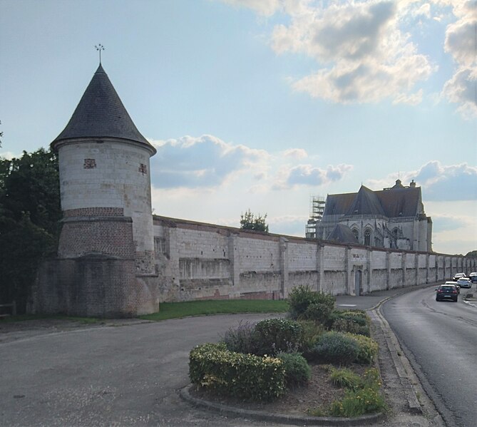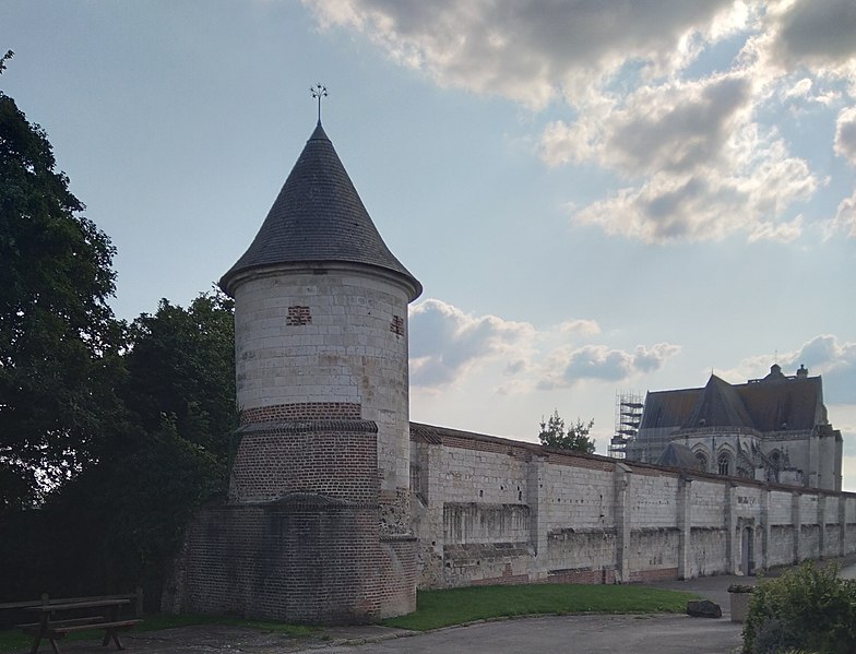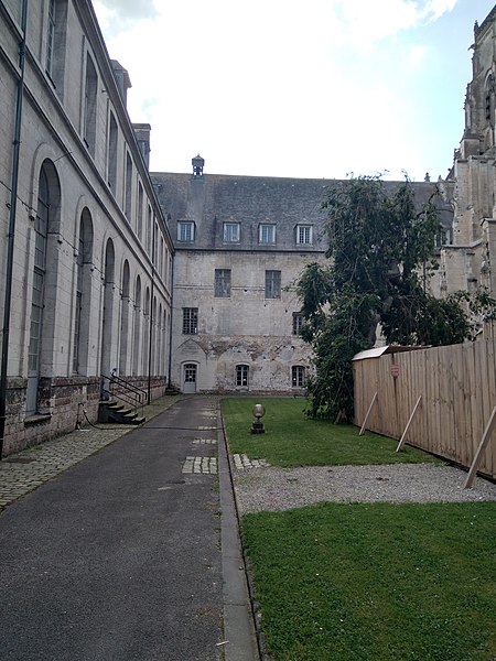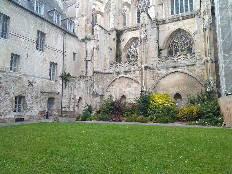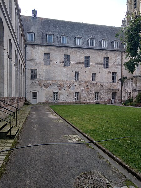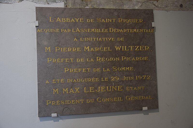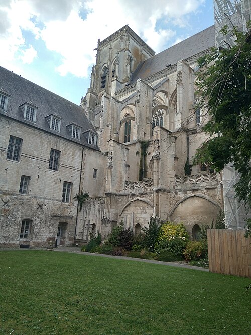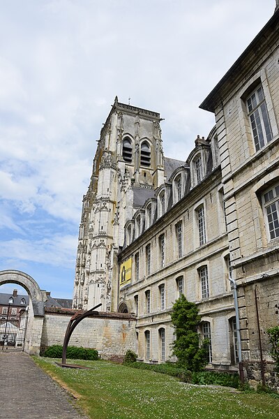 L'ancienne abbaye de Saint-Riquier, dont l'église abbatiale s'inscrit aux XVe-XVIe siècles, est un édifice religieux majeur de la Picardie et l'un des exemples les plus complets du gothique flamboyant en Picardie maritime. Selon la tradition, Riquier de Centule aurait fondé l'abbaye au VIIe siècle et, sous l'abbatiat d'Angilbert au IXe siècle, elle fut un important centre culturel, intellectuel et religieux. Les invasions normandes laissèrent l'abbaye en ruine ; elle fut réparée au XIe siècle et une crypte dite de Gervin fut construite à l'est du chœur. Incendiée en 1131 par Hugues de Campdavène, puis restaurée, l'abbatiale connut à partir de la seconde moitié du XIIIe siècle une vaste campagne de construction engagée par Gilles de Machemont, qui entreprit le transept, le chœur, le déambulatoire, les chapelles rayonnantes, le cloître et la salle capitulaire. La chapelle Saint-André fut consacrée en 1274 ; la chapelle de la Vierge, axiale, et la chapelle Saint-Laurent appartiennent à la même campagne de travaux. Les successeurs de Gilles poursuivirent ces travaux jusqu'aux troubles de la Guerre de Cent Ans, puis la reprise du chantier se manifesta au XVe siècle sous Pierre Le Prestre, qui fit daller et décorer l'église, aménager un enfeu dans la chapelle de la Vierge, peindre les voûtes et entreprendre la construction d'un palais abbatial. Après l'incendie de 1475, réparations et travaux se poursuivirent sous Eustache le Quieux avec l'architecte Nicolas Lesveillé, malgré un nouveau sinistre en 1487, jusqu'à l'ouverture des chapelles absidiales, du trésor, de la nef orientale et de divers bâtiments conventuels avant 1511. Thibault de Bayencourt acheva la nef en élevant les deux dernières travées occidentales et procéda au rhabillage de la tour occidentale jusqu'en 1536. Passée en commende en 1537, l'abbaye fut à nouveau dévastée en 1554 par les troupes de Philippe II ; l'église, à l'exception de la chapelle de la Vierge et de deux chapelles voisines, ainsi que plusieurs bâtiments conventuels, furent incendiés. Au XVIIe siècle, des réparations et aménagements firent couvrir l'aile est du cloître, le transept et les bas-côtés, reconstruire le mur d'enceinte et entreprendre le bâtiment du dortoir ; la réforme de Saint-Maur, adoptée en 1660 sous Charles d'Aligre, redonna prospérité et permit la construction d'un nouveau logis abbatial et la restauration des charpentes, toitures et voûtes. Les bâtiments conventuels furent largement reconstruits à la fin du XVIIe et au début du XVIIIe siècle, puis gravement endommagés par un incendie le 29 mars 1719 ; l'ensemble fut néanmoins réparé rapidement dans la première moitié du XVIIIe siècle. Après la Révolution, l'abbaye fut vendue comme bien national ; l'église devint paroissiale le 12 novembre 1791 après son achat par l'abbé Callé, mais son état se dégrada encore avec la tempête de l'an XI, rendant des réparations urgentes. Au XIXe siècle, des travaux importants furent conduits, notamment par Cheussey qui remania les arcs-boutants de la face sud, puis par une succession d'architectes — Daniel Ramée, Aymar Verdier, Natalis Daullé, Danjoy, Hardion et Henri Deneux — qui intervinrent jusqu'au début du XXe siècle ; sous Deneux, les couvertures du déambulatoire et des chapelles rayonnantes furent remplacées par des terrasses en ciment en 1908-1909 et cette pratique s'étendit aux bas-côtés en 1911. L'abbatiale, inscrite au titre des monuments historiques dès 1840 et complétée par des protections en 1960 et 1965, appartient à un ensemble monumental plus vaste et se distingue par ses dimensions et ses proportions : longueur intérieure 96,60 m, largeur de la nef 13 m, bas-côtés 10,40 m, voûtes à 24,60 m et tour élevée à 48,80 m. La façade occidentale s'ouvre par trois portails richement sculptés, aujourd'hui altérés par l'érosion et les destructions révolutionnaires ; elle est surmontée d'un clocher carré flanqué de deux tourelles hexagonales abritant les escaliers. Le tympan central représente un Arbre de Jessé avec la Vierge à l'Enfant et la Trinité, encadré par les abbés Eustache Le Quieux et Thibault de Bayencourt, tandis que le grand gâble porte le Couronnement de la Vierge ; d'autres scènes et statues ornant les tympans et le clocher évoquent des épisodes bibliques et des saints. La nef, de plan basilical à trois vaisseaux et six travées, fut amorcée au XIIIe siècle et remaniée au XVe siècle ; elle présente deux niveaux d'arcades et un large décor de feuilles et de végétaux sculptés sur nervures, clefs de voûte et chapiteaux. Les bas-côtés sont ornés de clefs pendantes et abritent les fonts baptismaux ainsi que des châsses en bois doré de Saint Mauguille et de Saint Vigor. L'orgue, originaire de l'abbaye des Prémontrés de Chartreuve et installé sous le clocher en 1731, a connu plusieurs interventions (Labour, relevage en 1854, modifications à la fin du XIXe siècle et restauration par Laurent Plet de 2001 à 2005) ; il compte 30 jeux répartis sur trois claviers et un pédalier. Le transept, séparé de la nef par une grille du XVIIe siècle, présente des voûtes à liernes et tiercerons, des clefs sculptées de feuillage et une balustrade flamboyante reposant sur un larmier décoré de petites têtes. Le chœur du XIIIe siècle conserve 68 stalles en chêne du XVIIe siècle et un maître-autel à la romaine offert par Charles d'Aligre, composé de panneaux de marbre blanc sculptés et classé au titre d'objet, ainsi que des chandeliers et une lampe de chœur en argent ciselé également classés. Le déambulatoire et les chapelles rayonnantes présentent une décoration uniforme avec boiseries de chêne sculptées, peintures et grilles de fer forgé ; la chapelle axiale de la Vierge, plus vaste, est ornée de culs-de-lampe polychromes illustrant de nombreuses scènes de la vie de la Vierge et d'une série 