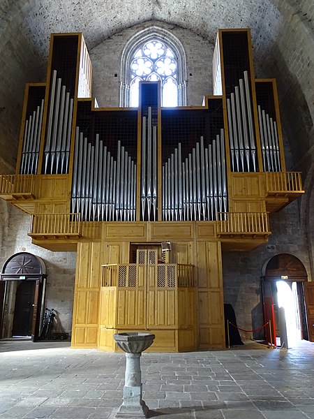 L'abbaye de Sylvanès, située sur la commune du même nom dans le Sud-Aveyron, est une ancienne abbaye cistercienne fondée par Pons de Léras et rattachée à l'ordre de Cîteaux en 1136. Issue d'une expérience érémitique, la communauté se structura rapidement : certains frères suivirent un noviciat à l'abbaye de Mazan, d'autres restèrent comme frères convers pour assurer les travaux matériels. Grâce à de nombreuses donations la maison acquit des terres, des droits et des ressources minières qui assurèrent son essor et sa pérennité dans les siècles suivants. La construction du nouvel ensemble monastique, déplacé vers la vallée du Cabot, se déploya aux XIIe et XIIIe siècles selon les canons cisterciens, avec une architecture marquée par la sobriété et l'emploi d'appareils de pierre soignés. L'église abbatiale, largement préservée, combine des éléments romans et gothiques : elle possédait à l'origine deux portes romanes, a reçu une grande fenêtre gothique, et sa nef est couverte d'un rare berceau brisé qui témoigne d'une influence bourguignonne. La nef, conçue comme un vaisseau unique de 30 mètres de long et 14,5 mètres de large, se prolonge par un transept et un chœur surbaissé se terminant par un chevet plat, composé de deux travées. Le transept, couvert d'un berceau brisé élevé et orné de grosses nervures torique en diagonale, montre des recherches techniques proches de la croisée d'ogives sans en utiliser le système structurel complet. Les murs extérieurs traités comme de simples cloisonnements autorisent de larges ouvertures au sud et accueillent des chapelles peu profondes aménagées entre les contreforts. Les bâtiments conventuels formaient un quadrilatère autour du cloître ; l'aile est, qui subsiste grâce à son usage agricole après la Révolution, abrite la sacristie, la salle capitulaire et ce qui fut le scriptorium, tandis que les ailes nord, ouest et sud ont en grande partie disparu. De l'ancien cloître ne subsiste que la galerie Est, longue de cinq travées, rythmée de baies lancées et de colonnettes jumelées ; un plafond de bois primitif céda plus tard la place à des croisées d'ogives desservant un étage supérieur. La salle capitulaire, achevée au XIIe siècle, voûtée au XIIIe et remaniée aux XVIIe–XVIIIe siècles, s'ouvre sur le cloître par deux grandes baies géminées et conserve un décor sculpté de motifs végétaux tandis qu'un décor stuqué d'époque moderne trahit des transformations intérieures. La sacristie, qui donne sur le transept sud, conserve des peintures murales du XIVe siècle dégagées sous l'enduit et un petit tympan monolithe portant une triple arcature symbolique de la Trinité. Le scriptorium, pièce soignée et largement ouverte, accueillait la bibliothèque et les ateliers de copie ; son voûtement romane surbaissé répond à des contraintes techniques liées à l'étage supérieur. L'abbaye connut un long déclin à partir du XIIIe siècle, confirmé par les troubles des guerres, les épidémies et les pratiques qui s'éloignaient de la Règle, et elle finit par être saisie et vendue comme bien national pendant la Révolution, les bâtiments conventuels étant transformés en exploitation agricole tandis que l'église retrouvait une fonction paroissiale. Inscrite et classée au titre des Monuments historiques au XIXe siècle, l'ensemble resta toutefois affecté par des destructions et des remaniements avant d'être racheté par la commune au XXe siècle. Redécouverte et restaurée à partir des années 1970 grâce à l'impulsion du père dominicain André Gouzes et de Michel Wolkowitsky, l'abbaye est aujourd'hui un centre culturel de rencontre dédié à la musique, à l'art et à la spiritualité. Elle accueille chaque été le Festival International Musiques Sacrées – Musiques du Monde, créé en 1977, qui réunit des formations vocales et instrumentales et attire plusieurs milliers de festivaliers, ainsi que des stages, colloques et actions pédagogiques. Le site abrite aussi le musée Zamoyski, ouvert en 2009, et un grand orgue contemporain construit en 1997 par Daniel Birouste, instrument de 59 jeux dont l'organiste titulaire est Henri‑Franck Beaupérin. L'abbaye demeure ouverte au public, propose une hôtellerie et poursuit sa vocation de lieu de création, de diffusion et de transmission culturelle.