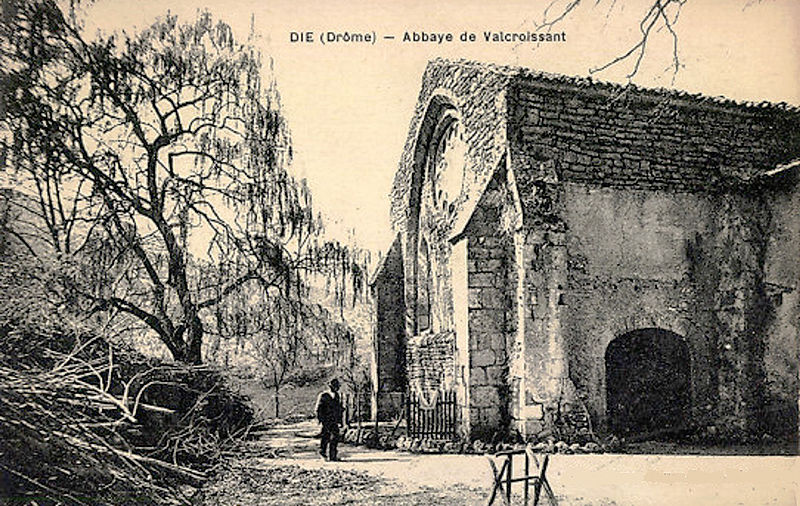 L'abbaye de Valcroissant est une ancienne abbaye cistercienne située sur la commune de Die, dans la Drôme. Elle a été fondée en 1188 par des moines venus de l'abbaye de Bonnevaux. Le torrent de Valcroissant servait de captage à l'un des aqueducs qui alimentaient la ville romaine Dea Augusta (Die) ; le specus de cet aqueduc a été retrouvé en juillet 1962. Valcroissant ne connut jamais un grand développement : elle ne fonda aucune abbaye‑fille et ne compta guère plus d'une douzaine de moines. Cette modestie se reflète dans des édifices de taille réduite : l'abbatiale est plus courte côté façade que dans des abbayes cisterciennes comparables, et la sacristie occupe l'une des chapelles du chevet. L'abbaye fut ruinée pendant les guerres de Religion puis transformée en exploitation agricole ; paradoxalement, cette réaffectation contribua à la conservation des bâtiments, entretenus pour leur usage comme bergerie ou grange. En 1893, le pasteur réformé de Die Jules Dautheville et son épouse Pauline achetèrent l'abbaye qu'ils avaient découverte l'année précédente ; ils s'y installèrent en 1896 et envisagèrent d'y créer un orphelinat protestant, projet interrompu par la mort prématurée du pasteur à 46 ans. Dans les années 1950, le mathématicien et philosophe Marcel Légaut et son épouse rachetèrent l'abbaye et entreprirent des travaux de restauration tout en maintenant une activité agricole, notamment l'élevage. Cette restauration a conduit au classement de l'abbaye à l'inventaire des monuments historiques le 25 octobre 1971. Les travaux se sont poursuivis au XXIe siècle sous la conduite de Rémy Légaut, sa femme Martine, et de l'association « Les Amis de Valcroissant », créée par André Pitte et Serge Durand. Le monastère adopte le plan bernardin traditionnel, avec un cloître central entouré de l'église abbatiale et des bâtiments conventuels. L'abbatiale présente un chevet plat flanqué de quatre chapelles, dont l'une sert de sacristie ; l'ensemble comprend le chevet de l'église, les bâtiments conventuels, l'ancien cloître, la salle capitulaire et la voûte de cette salle. Valcroissant est fille de l'abbaye de Bonnevaux.