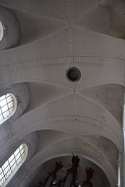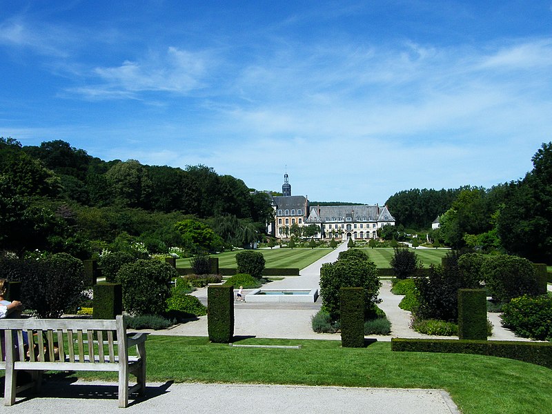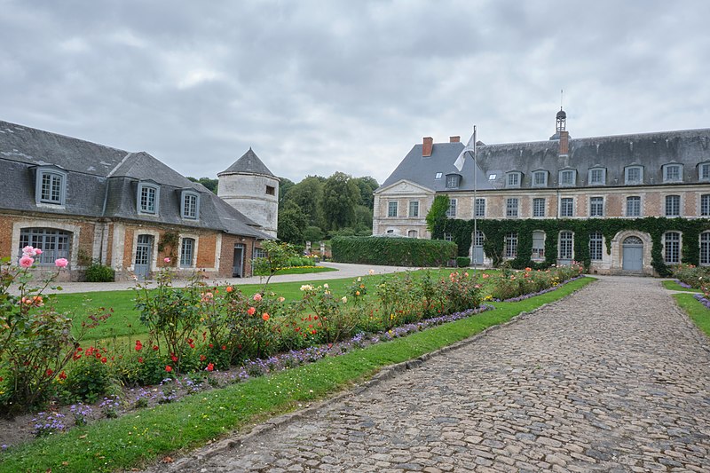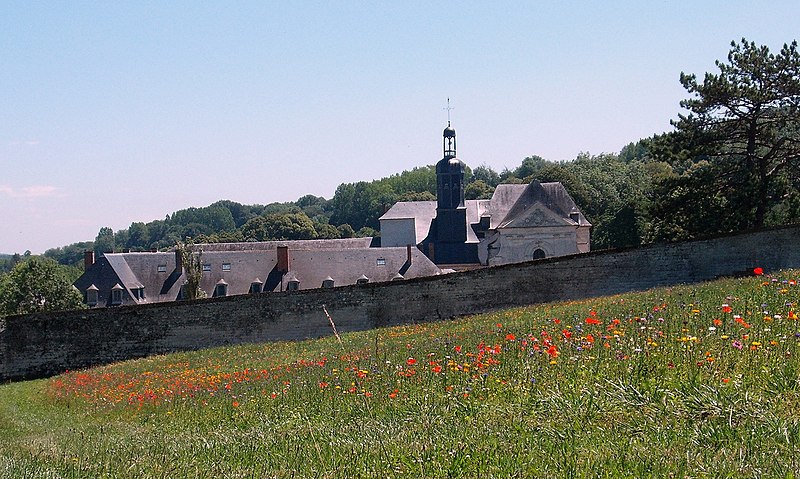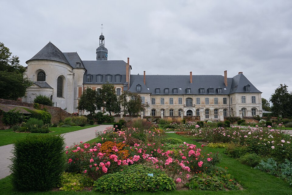 Le buffet d'orgues en chêne et tilleul, œuvre sculptée de Pfaff, renferme un instrument dont la tuyauterie est en grande partie du XIXe siècle mais qui conserve quatre jeux du XVIIIe siècle ; l'orgue, classé monument historique au titre d'objet, a été restauré par Théo Haerpfer en 1993 dans la disposition de 1845 tout en conservant la console et le buffet d'origine. Les bâtiments abbatiaux s'organisent autour d'un cloître voûté en brique et pierre ; l'entrée ouvre sur une vaste cour d'honneur prolongée par des communs et un colombier du XVIe siècle, et l'intérieur regroupe la salle capitulaire, un grand salon lambrissé sculpté par Pfaff, des appartements et cellules à l'étage ainsi qu'une ancienne grange à colombages. Un poirier planté en 1756, connu pour la variété Cuisse madame ou Madeleine d'Angers, figurait parmi les plus vieux poiriers de France avant sa disparition au début des années 2022. Parmi les personnalités liées au lieu, Thérèse Papillon a marqué l'histoire du préventorium, son frère Jean‑Baptiste Papillon fut aumônier et résistant, et des musiciens comme Marie‑Claire Alain et Jehan Alain ont entretenu des liens forts avec l'orgue et l'abbaye.