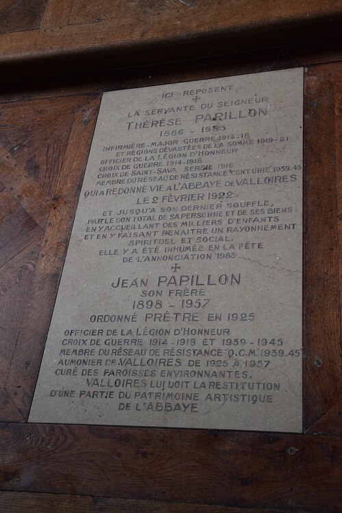 L'abbaye de Valloires, fondation cistercienne du XIIe siècle située sur la commune d'Argoules (Somme), a été établie par des moines venus de Cîteaux après l'autorisation de Guy II de Ponthieu. Les moines s'installèrent définitivement dans la vallée de l'Authie en 1158 ; la tradition rapporte que le site était, selon la légende, couvert de morilles. À son apogée aux XIIe et XIIIe siècles, l'abbaye abritait une centaine de moines et fit ériger une abbatiale ogivale en 1226 qui devint la nécropole des comtes de Ponthieu. La guerre de Cent Ans et les conflits des siècles suivants provoquèrent pillages et dégradations, entraînant des réfugiés et des occupations militaires, si bien que l'ensemble était délabré à la fin du XVIIe siècle. La reconstruction des bâtiments débuta au XVIIIe siècle et s'acheva vers 1730 ; l'abbatiale médiévale s'effondra en 1738 et une nouvelle église fut édifiée à partir de 1741 sur les plans de l'architecte Raoul Coignard, sous la direction du prieur dom Comeau et de l'abbé commendataire monseigneur d'Orléans de La Motte. La décoration intérieure fut confiée au sculpteur autrichien Simon Pfaff de Pfaffenhoffen et au ferronnier Jean‑Baptiste Veyren, et la nouvelle église fut consacrée en 1756. Devenue bien national en 1790, l'abbaye connut plusieurs ventes et usages avant d'être occupée par la Société des Basiliens en 1817, puis par des congrégations et enfin transformée en hôpital militaire belge de 1915 à 1919. En 1922, Thérèse Papillon y fonda un préventorium qui fonctionna jusqu'en 1974 ; l'association créée alors reste propriétaire et une partie du site accueille aujourd'hui des enfants en difficulté tandis qu'une autre partie est dédiée à l'hébergement de visiteurs. L'abbaye fut classée monument historique en 1907 et certains bâtiments et l'église sont ouverts à la visite ; les jardins aménagés par Gilles Clément ont été ouverts au public en 1989. Depuis 2021, l'association de Valloires propose un spectacle nocturne historique intitulé « Valloires, l'abbaye Lumière ».