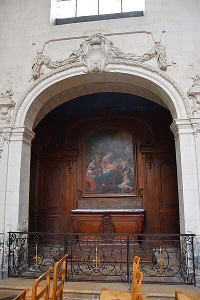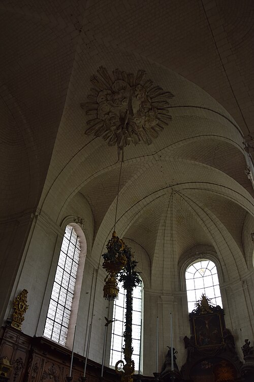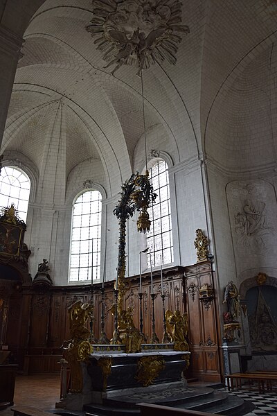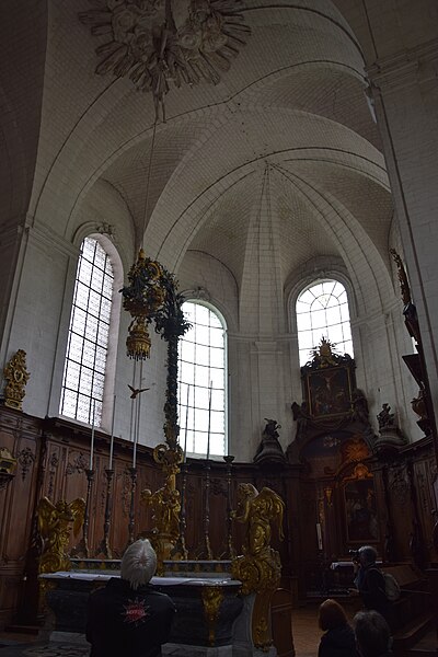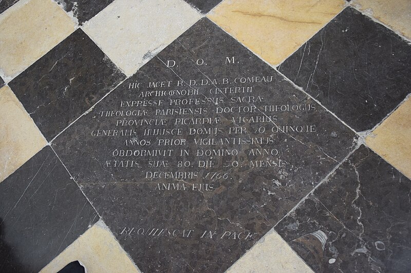 L'abbatiale, de dimensions modestes, présente une façade néo‑classique sobre qui rappelle la sobriété cistercienne, avec un portail central surmonté d'une haute fenêtre et un fronton triangulaire sculpté ; la nef et l'abside sont soutenues par une série de contreforts. En contraste avec l'extérieur, l'intérieur offre un décor rococo remarquable réalisé par Pfaff : il comprend le buffet d'orgues sculpté, la chaire, des confessionnaux, des lambris et des stalles finement travaillés, ainsi que des autels et statues en bois et en marbre. Des grilles du chœur « à double lecture », chef‑d'œuvre de ferronnerie de Jean Veyren, séparent la nef du chœur. Le transept abrite un enfeu avec les gisants attribués à Simon de Dammartin et à son épouse Marie de Ponthieu, décédés respectivement en 1239 et 1251, et des autels latéraux ornés de sculptures de Pfaff ; on lui doit également plusieurs statues et portraits sculptés représentant notamment saint Martin, saint Bernard, dom Comeau et monseigneur de La Motte. La sacristie conserve quatre tableaux de Joseph François Parrocel, et la chapelle de la Vierge, située dans l'abside, est décorée d'un autel en bois et d'un tableau de Parrocel représentant l'Assomption ; une morille suspendue au plafond rappelle la légende fondatrice.