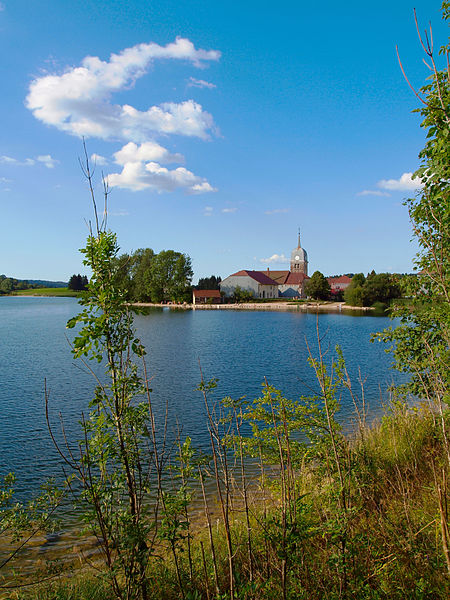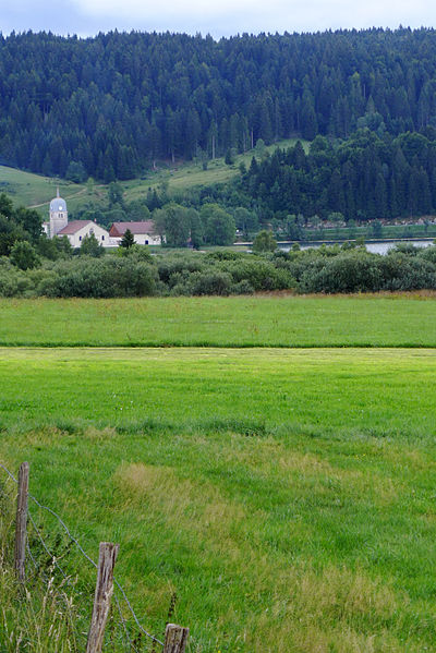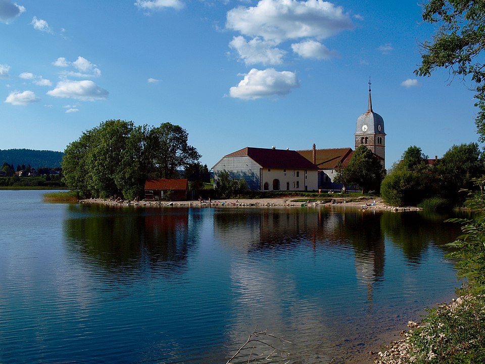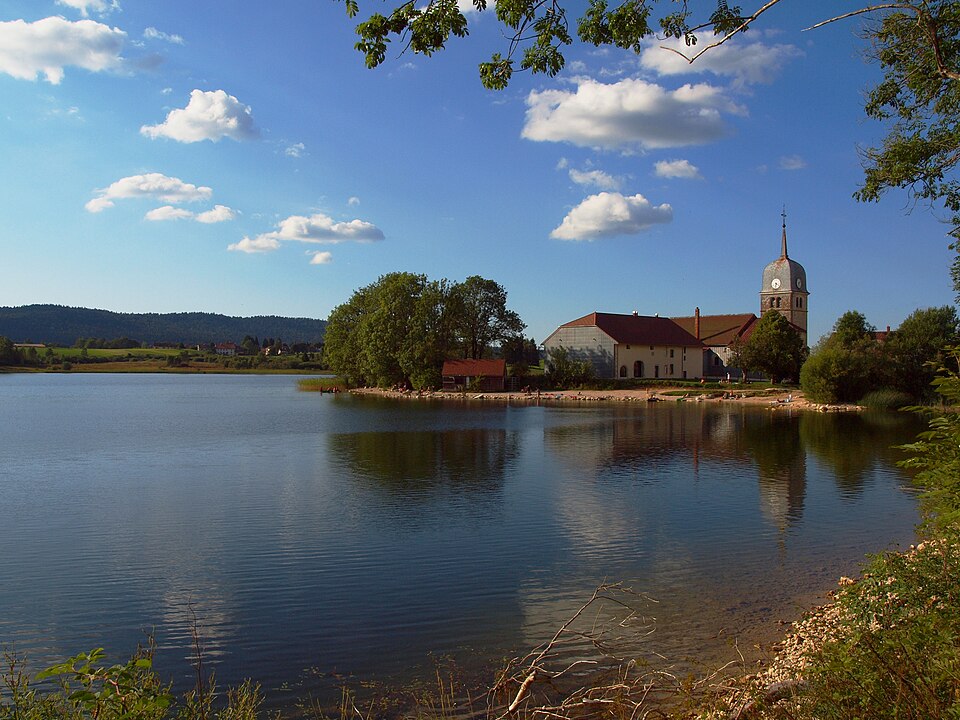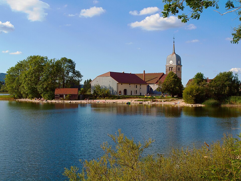 L'abbaye Notre-Dame du Grandvaux, située sur la rive du lac de l'Abbaye près de Saint-Laurent-en-Grandvaux dans le massif du Jura, conserve aujourd'hui principalement l'église ainsi que quelques constructions postérieures, comme un bâtiment de ferme et un presbytère. Une première fondation est attribuée aux moines de Saint-Oyend menés par Aubert, qui établirent au VIe siècle, vers 523, un prieuré sur une petite presqu'île dédié à Notre-Dame ; cette implantation, mal documentée, déclina vraisemblablement aux Xe ou XIe siècles. Au XIIe siècle la maison fut réactivée : en 1170 Thibert de Montmorot fit appel aux chanoines augustins de l'abbaye d'Abondance et la reconstruction achevée en 1172 comprenait une église, un cloître carré entouré d'une muraille et d'un fossé équipé d'un pont-levis. La communauté reçut alors le statut d'abbaye en 1172 et des dotations importantes en forêts, pâturages et vignes, tout en restant sous l'influence de l'abbaye d'Abondance. Des conflits de voisinage opposèrent vite le Grandvaux aux chartreux de Bonlieu, aux seigneurs locaux et surtout à l'abbaye de Saint-Oyand, qui revendiqua des droits d'antériorité et d'importantes redevances. Pour protéger la fondation, le pape Honorius III la plaça en 1226 sous la protection directe du Saint-Siège, mais la situation resta fragile et imbriquée dans les possessions voisines. Un échange de territoires avec l'abbaye d'Abondance fut établi en novembre 1244, confirmé ensuite par des actes pontificaux, et aboutit progressivement à l'union du Grandvaux à l'abbaye de Saint-Oyand (Saint-Claude). La prise de possession définitive eut lieu à la fin du XIVe siècle et réduisit l'ancien monastère au statut de prieuré de petite taille, avec deux moines, un prieur et un sacristain. Cette dépendance perdura au-delà de la sécularisation de Saint-Claude en 1742 et jusqu'à la Révolution, qui mit fin à l'abbaye en vendant ses biens comme biens nationaux. L'occupation monastique cessa et l'église se transforma en église paroissiale, centre d'une vaste paroisse couvrant le Grandvaux ; elle fut remaniée au milieu du XVIIe siècle après un incendie et achevée au XVIIIe siècle. L'édifice conservé est de plan allongé sans transept ; son état actuel garde des éléments de différentes époques : des parties datent du troisième quart du XVe siècle, le chœur a été refait au XVIIe siècle et se termine par une abside à trois pans. La façade sur le lac conserve le portail central et la baie du XVe siècle ; la nef présente des clés de voûte, un portail à moulurations gothiques et une baie flamboyante. La tour du clocher a été reconstruite et ses baies élargies en 1729 ; plusieurs campagnes de restauration ont ensuite eu lieu aux XVIIIe et XIXe siècles, puis une réfection complète a été entreprise en 1974. Du monastère médiéval ne subsistent guère que l'église, un ancien bâtiment de ferme et un presbytère, les autres constructions ayant été transformées ou remplacées par des édifices des abbés de Saint-Claude. Le souvenir de l'abbaye demeure dans la toponymie locale, notamment le nom du lac de l'Abbaye.