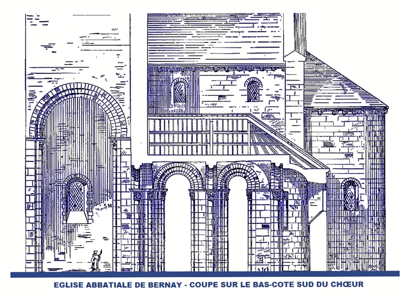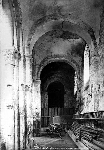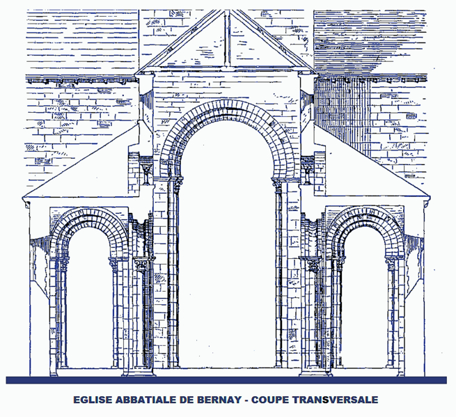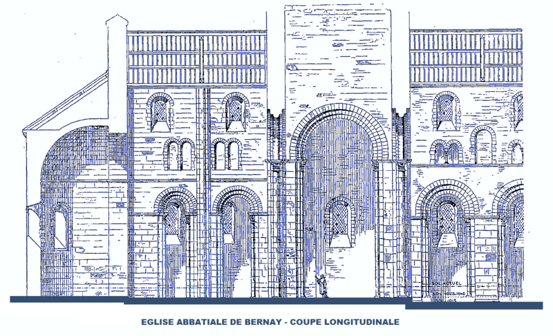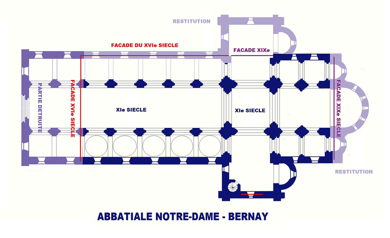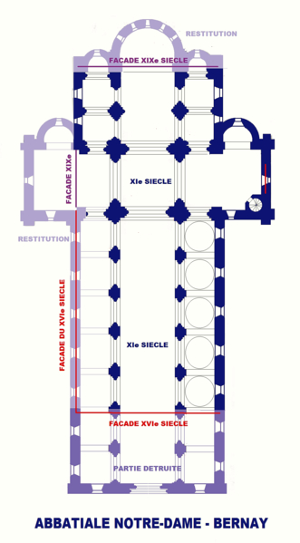 L'ancienne abbaye Notre-Dame de Bernay, située dans la commune de Bernay (Eure), est un monument majeur pour la compréhension des premières manifestations de l'architecture romane en Normandie. Fondée au début du XIe siècle par Judith, duchesse de Normandie, et placée sous la règle bénédictine, elle fut reprise et dotée par Richard II qui la rattacha à l'abbaye de Fécamp et confia la reconstruction à Guillaume de Volpiano. L'établissement gagna son autonomie sous l'abbé Vital de Creuilly, qui contribua à l'achèvement d'une œuvre architecturale importante. L'abbatiale a subi plusieurs dommages au cours des siècles : incendies, pillages pendant les guerres de religion et dégradations diverses aux XVIe et XVIIe siècles, puis des remaniements et démolitions liés aux changements d'affectation après la Révolution, lorsque l'abbaye fut supprimée et réaffectée à des usages civils (mairie, tribunal, prison, musée municipal, salle des fêtes). Les Mauristes prirent possession du site en 1628 et entreprirent, à partir de 1686, la reconstruction des bâtiments conventuels en pierre de taille ; ils modifièrent notamment la façade ouest et les travées occidentales de l'église et appliquèrent du stuc sur plusieurs chapiteaux. Des démolitions et modifications ont encore marqué le XIXe siècle (bras nord du transept, abside, tour centrale), puis une restauration engagée par la ville et les Monuments historiques à partir de 1963 a permis de dégager des éléments remarquables et de mieux comprendre l'importance de l'édifice au XIe siècle, travaux complétés en 1978. L'église abbatiale est classée au titre des monuments historiques (liste de 1862) et les autres bâtiments et vestiges ont fait l'objet d'inscriptions ultérieures.
