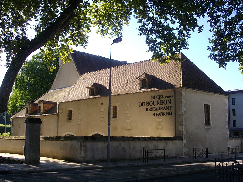 L’ancienne abbaye Saint-Ambroix, dite aussi Saint-Ambroise, se situe à Bourges (Cher), à la limite nord de la ville le long de l’Yèvre, sur le lieu de la tombe de saint Ambroix, évêque de Cahors. Fondée au VIIe siècle et attribuée aux moines bénédictins vers 770 hors les murs gallo-romains, elle a été détruite et reconstruite à plusieurs reprises au cours de son histoire. Les Normands la détruisirent en 868 ; elle fut ensuite rebâtie pour recevoir le corps de saint Ambroix. En 1012, Geoffroy le Noble la rebâtit et y adjoint un chapitre de chanoines réguliers de saint Augustin ainsi qu’une charte. L’abbaye fut saccagée pendant les guerres de Religion, notamment en 1562, malgré sa position à l’intérieur des remparts. Au début du XVIIe siècle, l’ensemble était très dégradé : entre 1635 et 1645 les bâtiments visibles aujourd’hui furent reconstruits pour former l’hôtel dit de Bourbon. L’architecte Lejuge participa à ces travaux et reconstruisit l’église abbatiale — qui employait l’ordre dorique à pilastres cannelés — ainsi que le bâtiment du dortoir. Le dortoir comprend, au rez-de-chaussée, l’ancienne galerie du cloître intégrée au corps de logis ; à l’étage, un couloir au‑dessus de cette galerie dessert cinq cellules de moines ayant conservé leurs aménagements et boiseries du XVIIe siècle. Acquise comme bien national pendant la Révolution, l’abbaye fut vendue et transformée en entreprise de fabrication de cordes et de toiles par le citoyen Butet en 1792, tentative qui échoua. Il est rapporté que, sous l’Empire, le capitaine Durand, gendre de Butet, aurait envoyé à sa femme deux fragments de crânes recueillis après la profanation d’un tombeau en Espagne. L’ensemble passa ensuite par mariage en 1860 aux Bourbon-Busset ; Louise de Bourbon-Busset le légua au diocèse pour en faire une maison de retraite pour prêtres, mais il fut finalement revendu à la ville de Bourges en 1966. L’église abbatiale fut démontée au XIXe siècle et il n’en subsiste que les vestiges du chœur, inscrits au titre des monuments historiques en 1964. Après avoir servi de décor au film Le Grand Meaulnes en 1965, les bâtiments furent incendiés lors d’un squat lié au Printemps de Bourges en 1988. Les ruines ont ensuite été restaurées par le groupe hôtelier Pelegrin dans le cadre d’un bail de cent ans avec la mairie, et l’ensemble est devenu l’établissement prestigieux connu aujourd’hui comme l’hôtel de Bourbon, seul élément subsistant de l’ancienne abbaye.